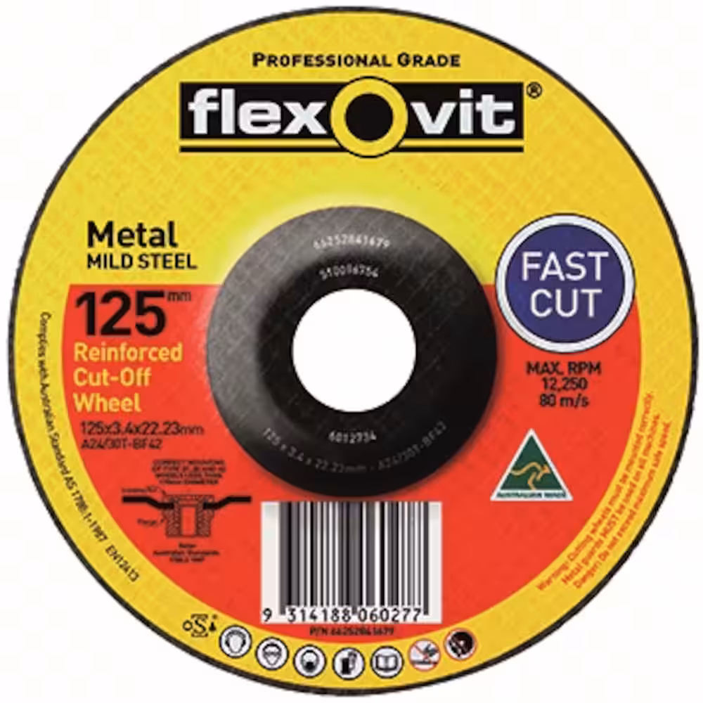 Flexovit 66252841707 A30S Depressed Centre Metal Cut Off Wheel – 115 x 3.4 x 22mm