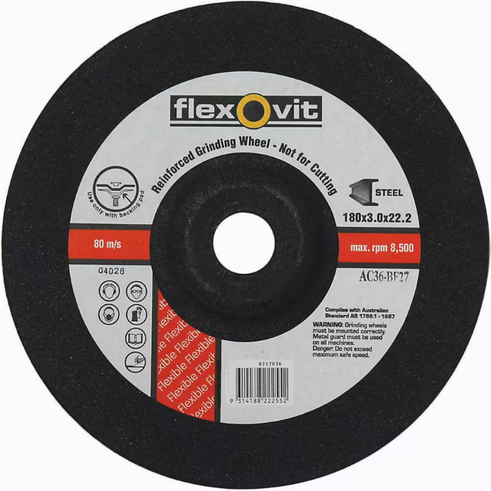 Home » Shop » CUTTING TOOLS (HSS & Carbide) » ABRASIVES » METAL DEPRESSED CENTRE GRINDING - FLEXIBLE DISCS “AC” » FLEXOVIT 125 x 3.0 x 22.23mm AC36 FLEXIBLE DISC DEPRESSED CENTRE GRINDING