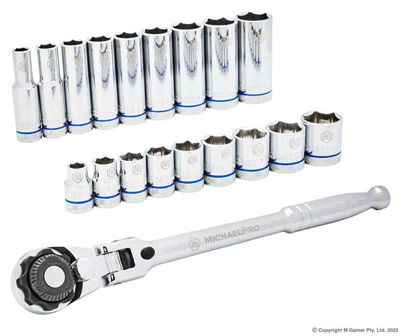 9 x Standard sockets in 8,10,12,13,14,15,17,19,21 mm