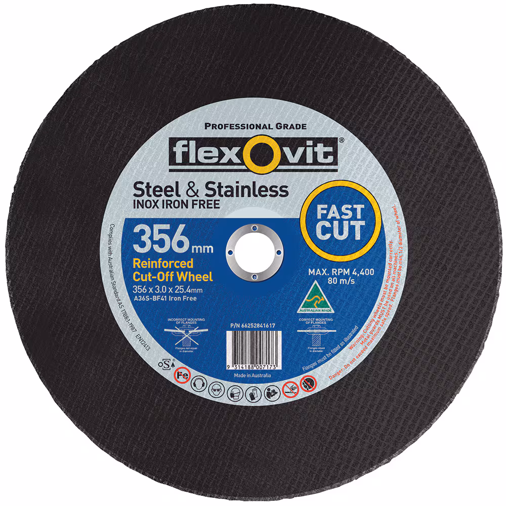 FLEXOVIT 305 x 3.0 x 25.4mm A36SB L/SPEED PORTABLE CHOP SAWS – METAL