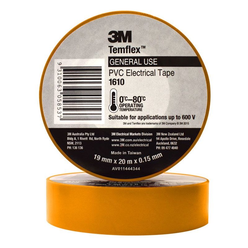 Temflexâ„¢ 1610 Electrical Tape is a quality, economical, general purpose vinyl insulating tape. Temflex 1610 is designed for use in phase identification, color coding of motor leads and piping systems and for marking safety areas.