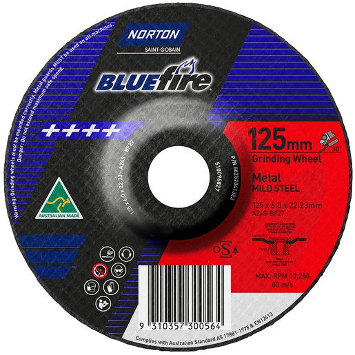 Home » Shop » CUTTING TOOLS (HSS & Carbide) » ABRASIVES » METAL DEPRESSED CENTRE GRINDING - GENERAL PURPOSE » A24S-125×6.0x22.23-T27 NOR-Bluefire