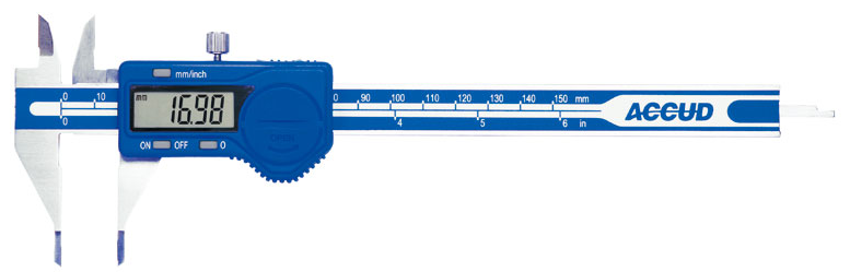 • Small point jaws fits into small grooves and recesses • Buttons: on/off, zero, mm/inch • Automatic power on/off • USB data output • Made of stainless steel Range: 0-150 mm/0-6″ Resolution: 0.01 mm/0.0005″ Accuracy: ±0.03 mm Length: 235 mm Beam Width: 16 mm