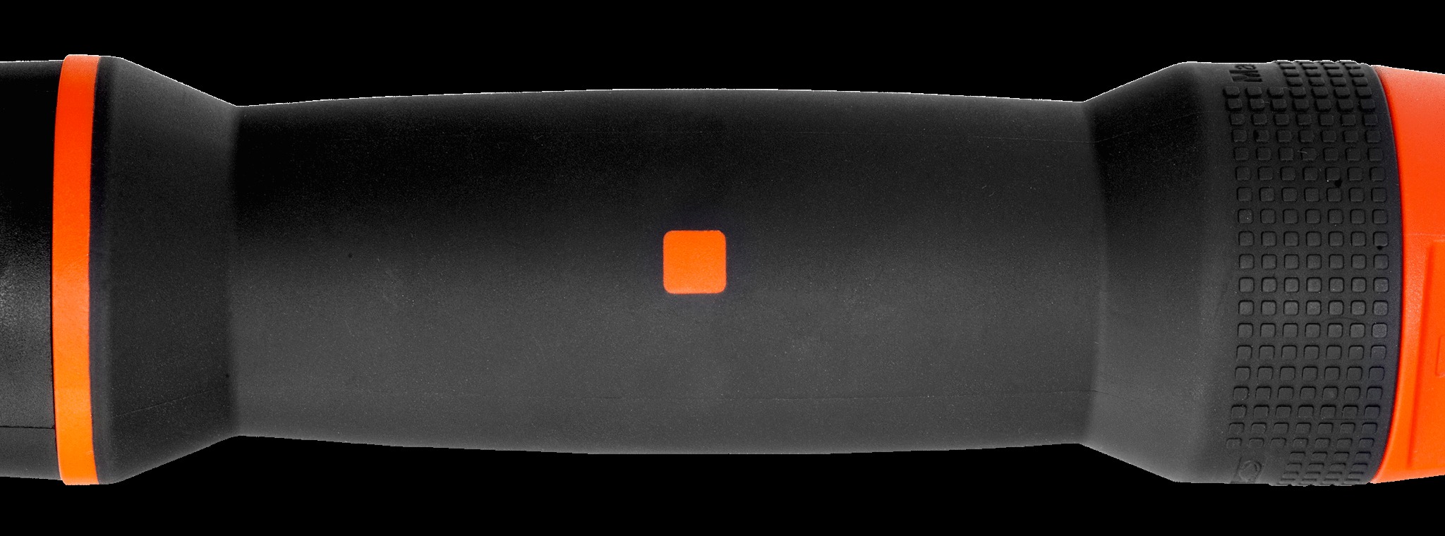 Lock/unlock knob with blue ring inside to warn the operator the wrench is unlocked