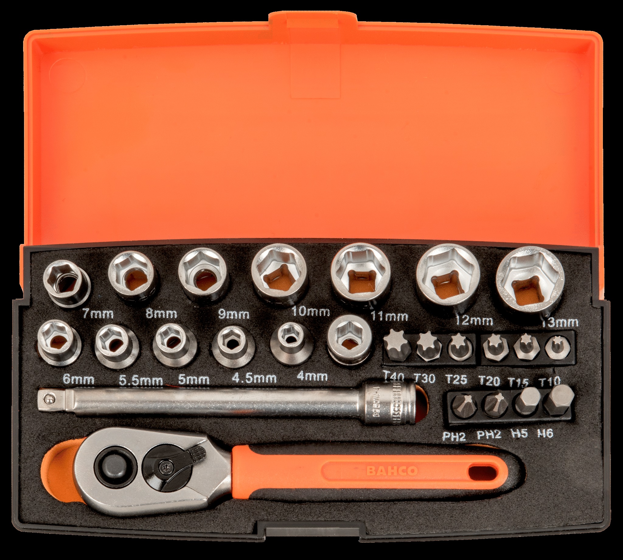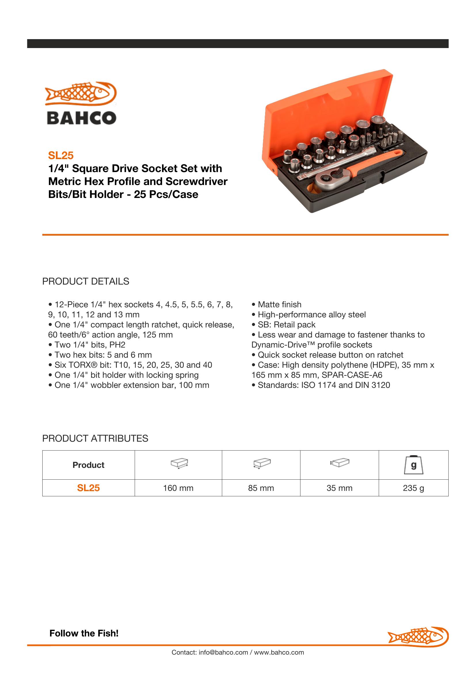 12-Piece 1/4″ hex sockets 4, 4.5, 5, 5.5, 6, 7, 8, 9, 10, 11, 12 and 13 mm