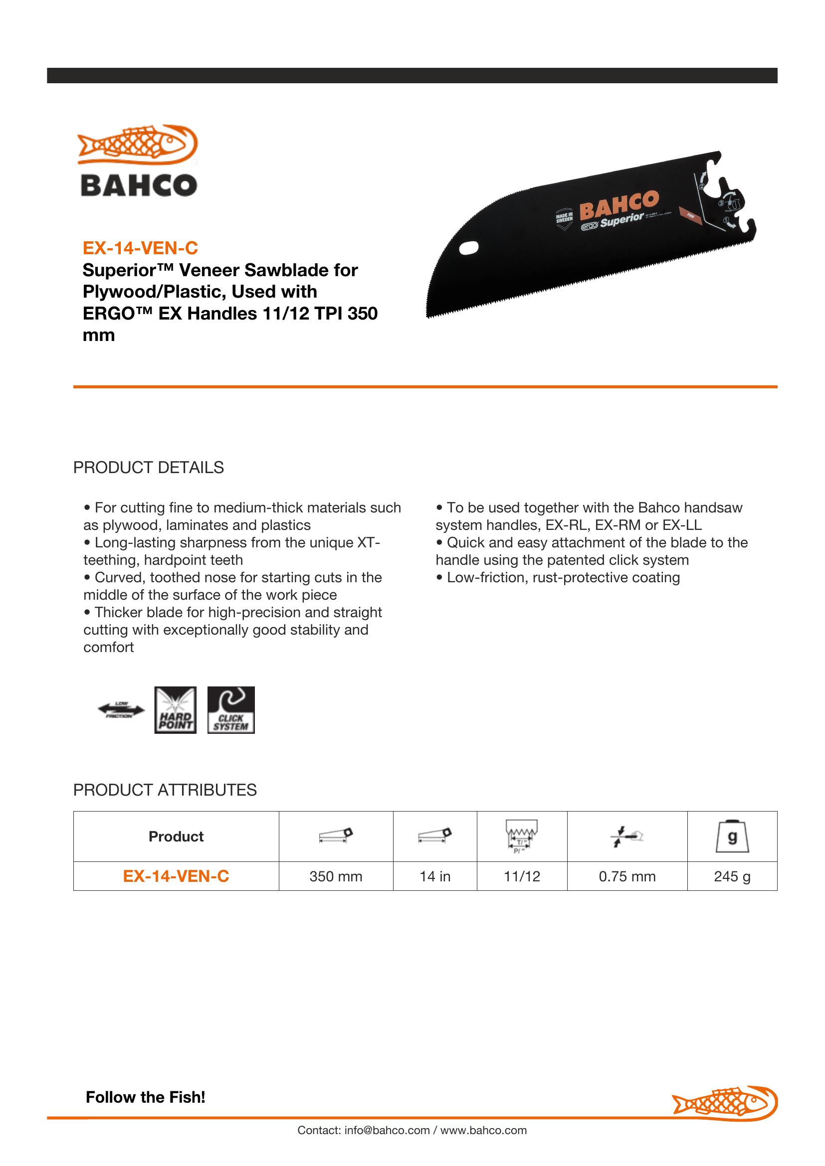To be used together with the Bahco handsaw system handles, EX-RL, EX-RM or EX-LL