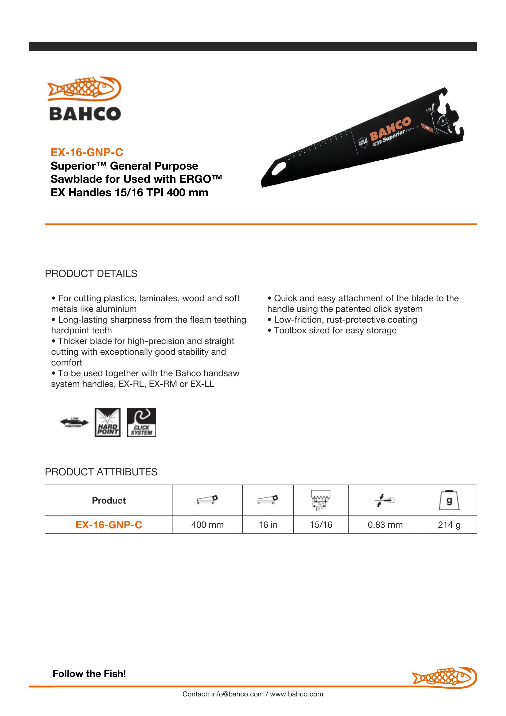 To be used together with the Bahco handsaw system handles, EX-RL, EX-RM or EX-LL