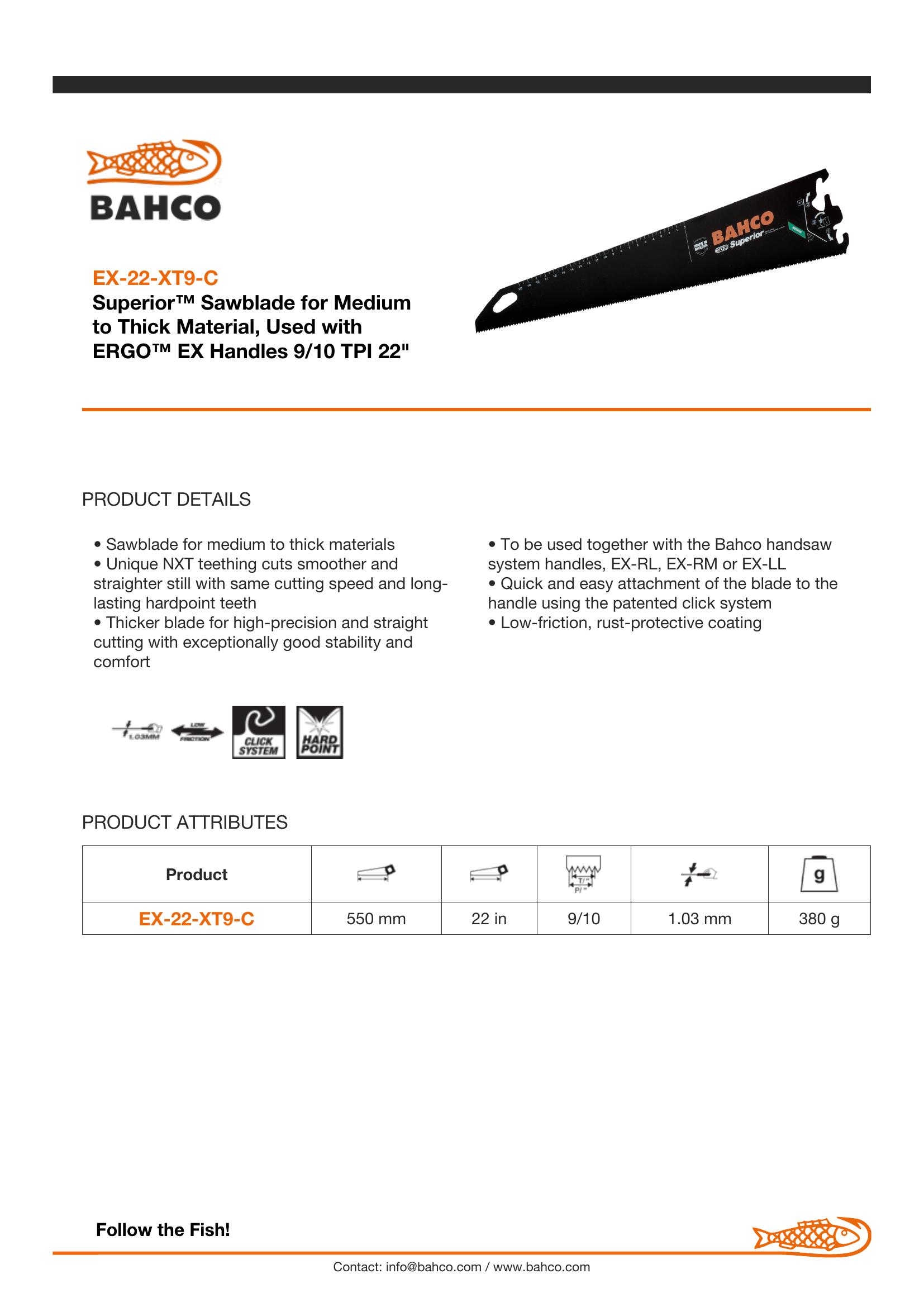 To be used together with the Bahco handsaw system handles, EX-RL, EX-RM or EX-LL
