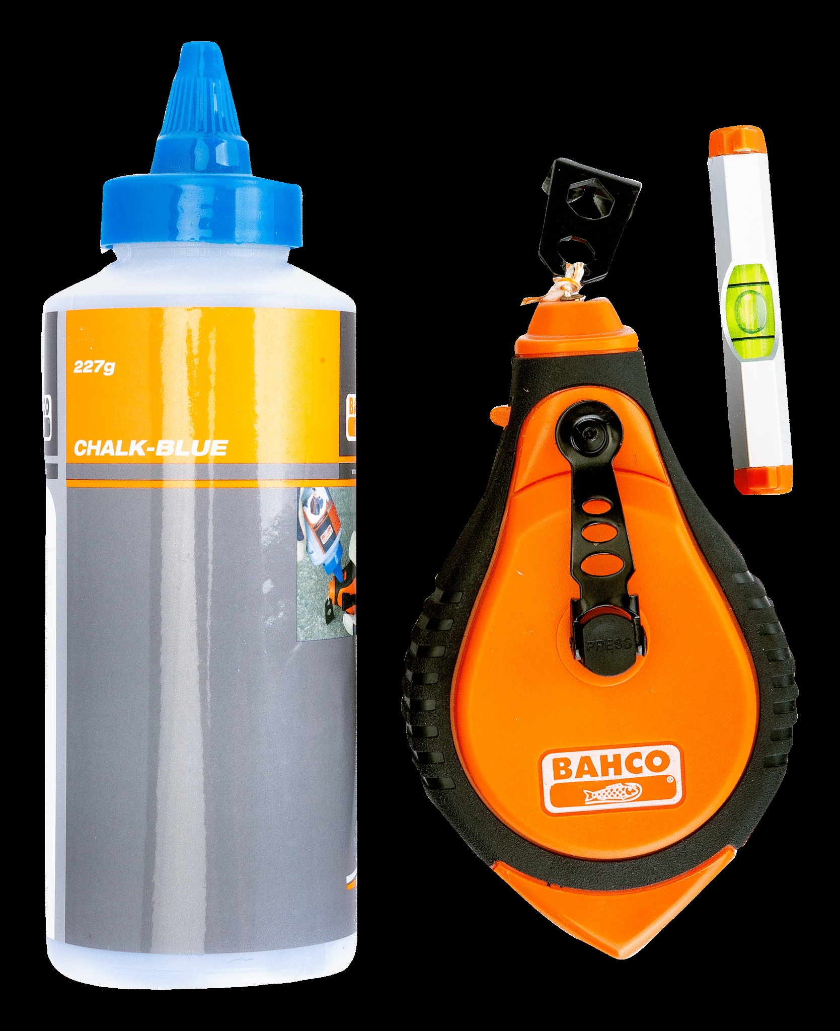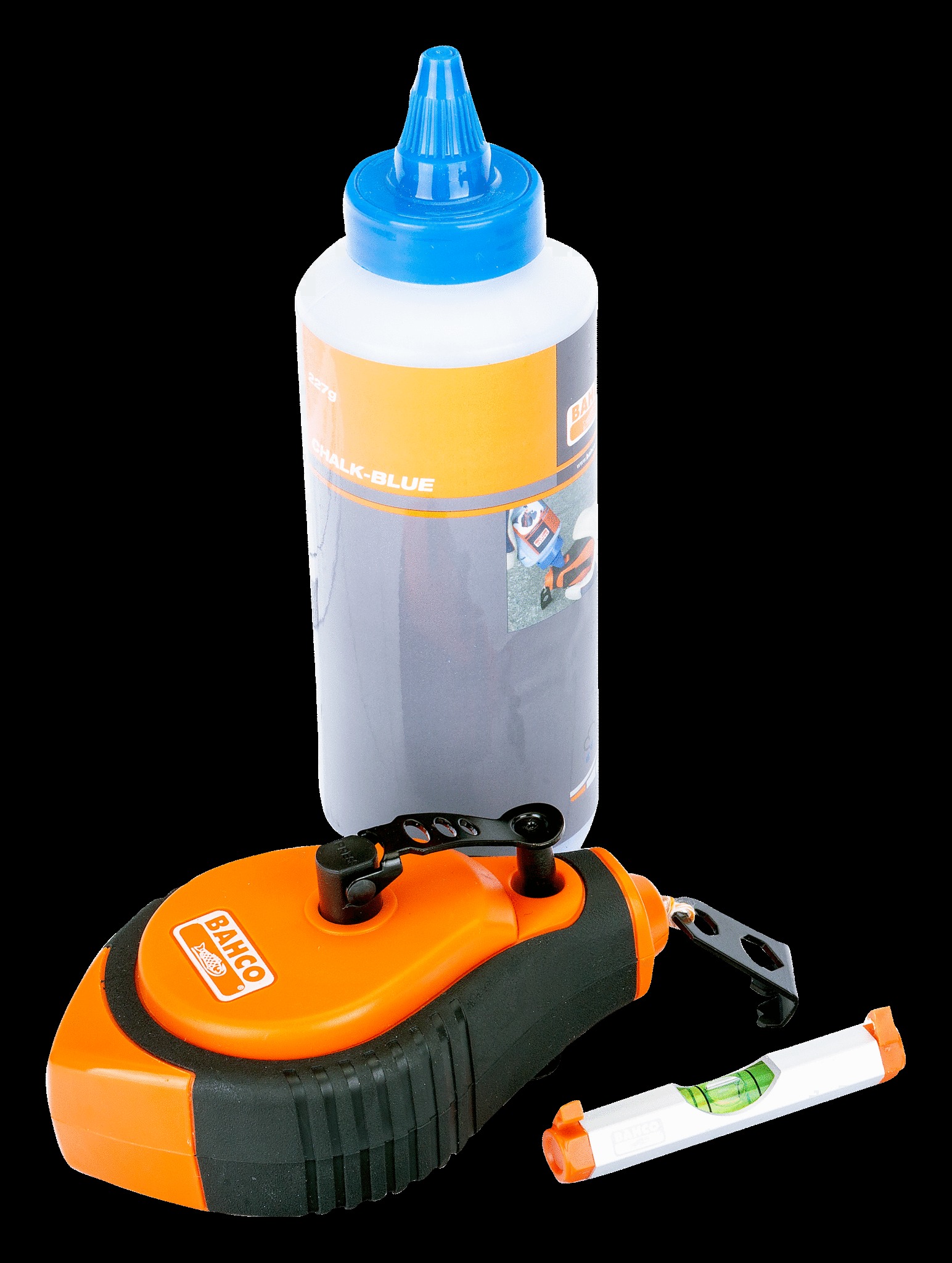 Set includes: CL-1221 chalk line, bottle of blue chalk, 466-LINE line level