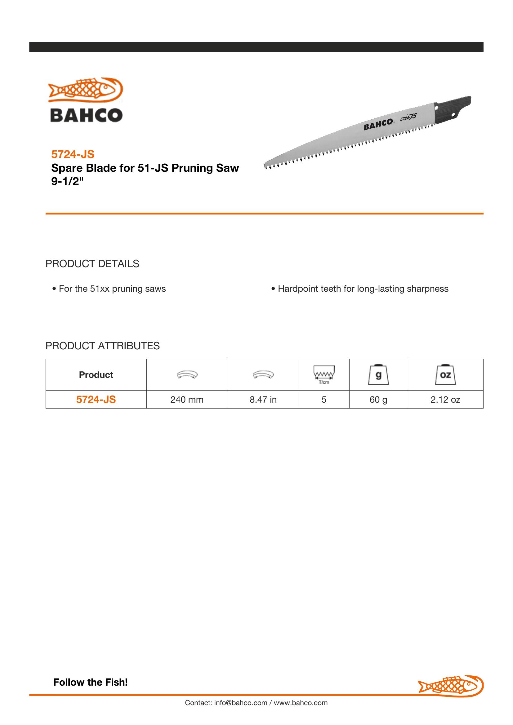 Home » Shop » CUTTING TOOLS (HSS & Carbide) » HACK SAW » Bahco Blade – suits Pruning Saw – 5124-JS-H