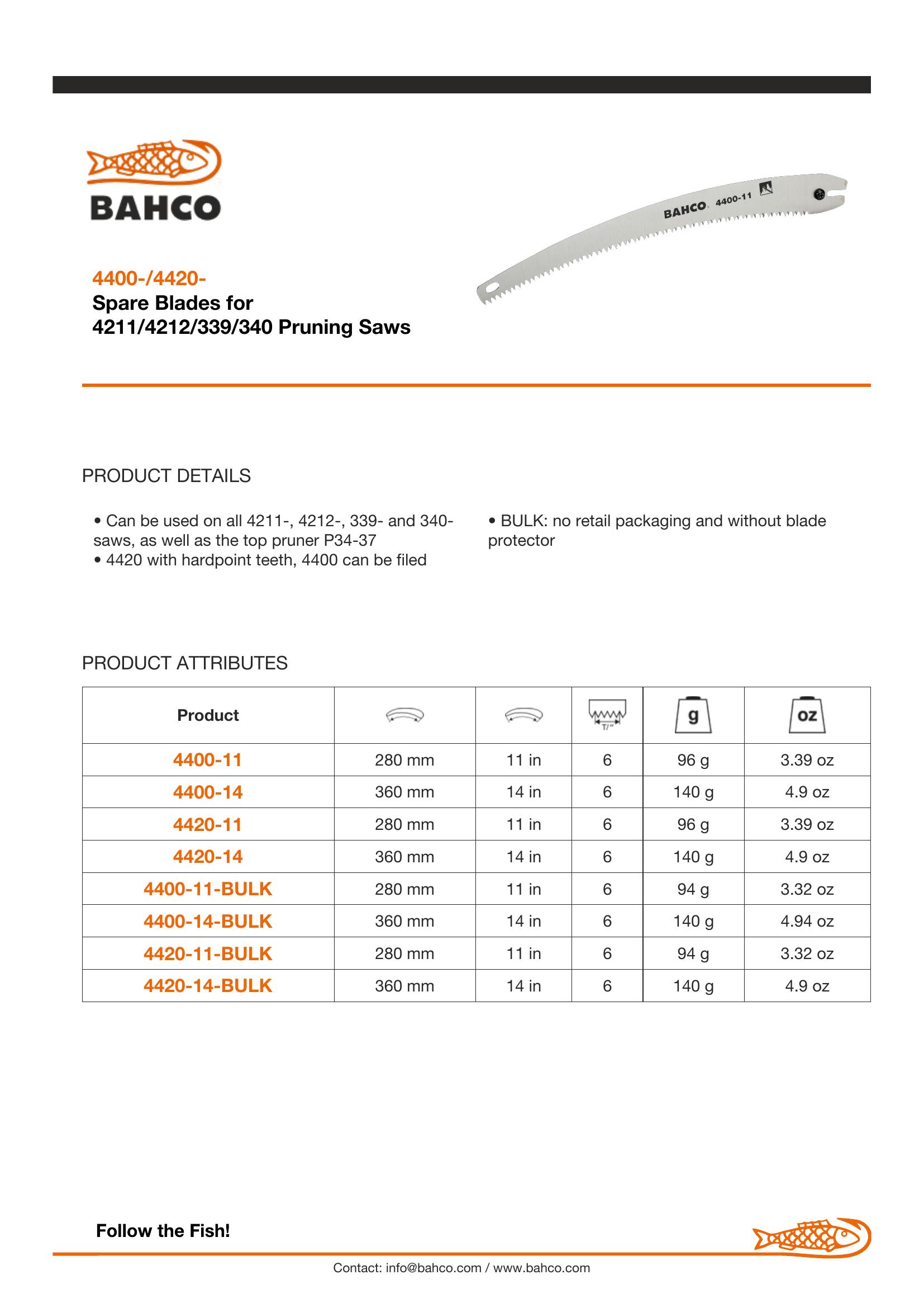Bahco Blade – suits Pruning Saws – 4211, 339-6T & 383-6T – also Lopping Head P34-37