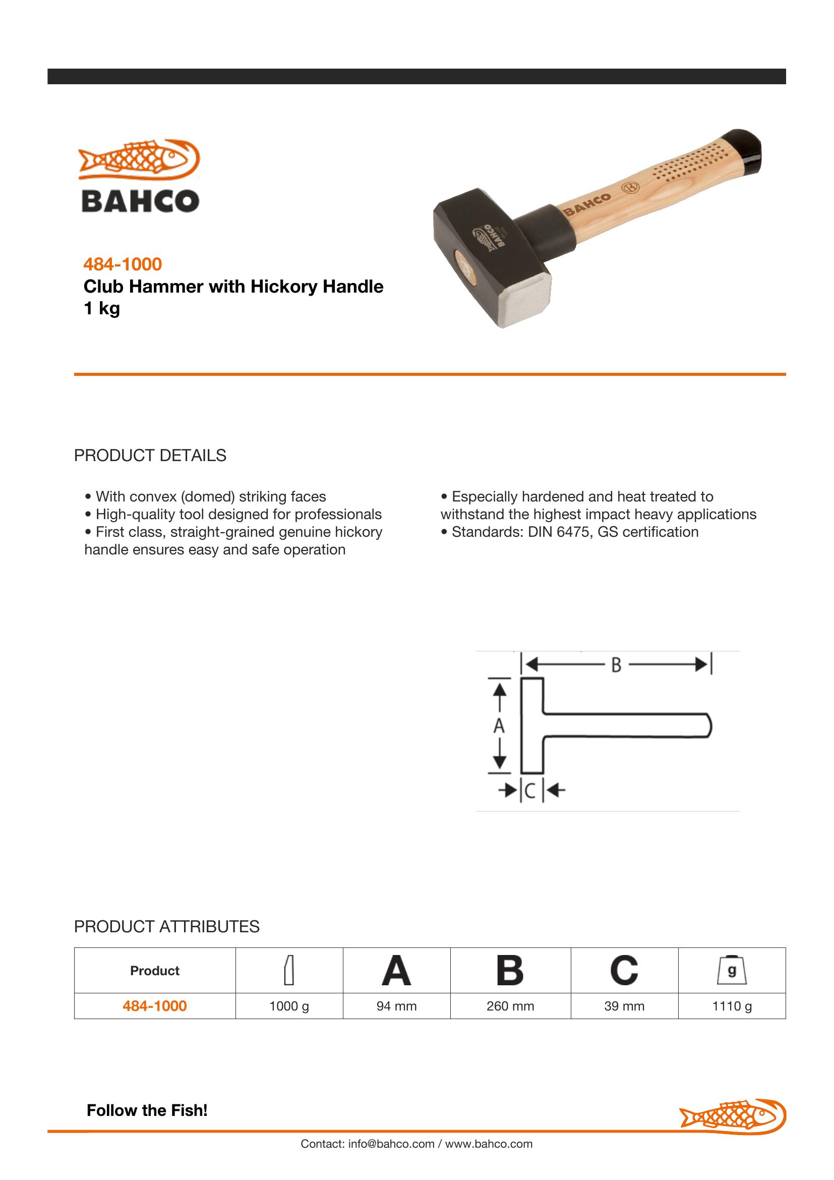 First class, straight-grained genuine hickory handle ensures easy and safe operation