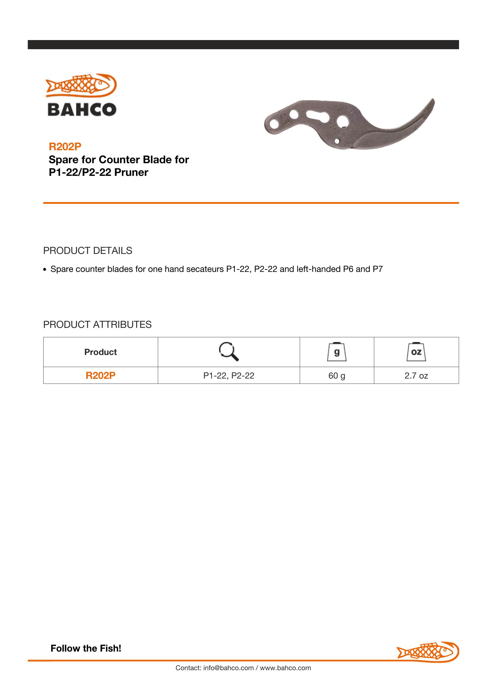 Home » Shop » HAND TOOLS » Bahco Counter blade for P1-22, P2-22 with orange handles