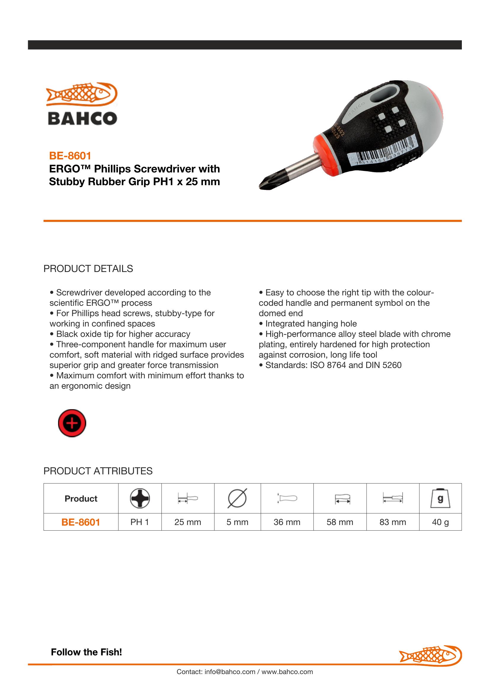 For Phillips head screws, stubby-type for working in confined spaces