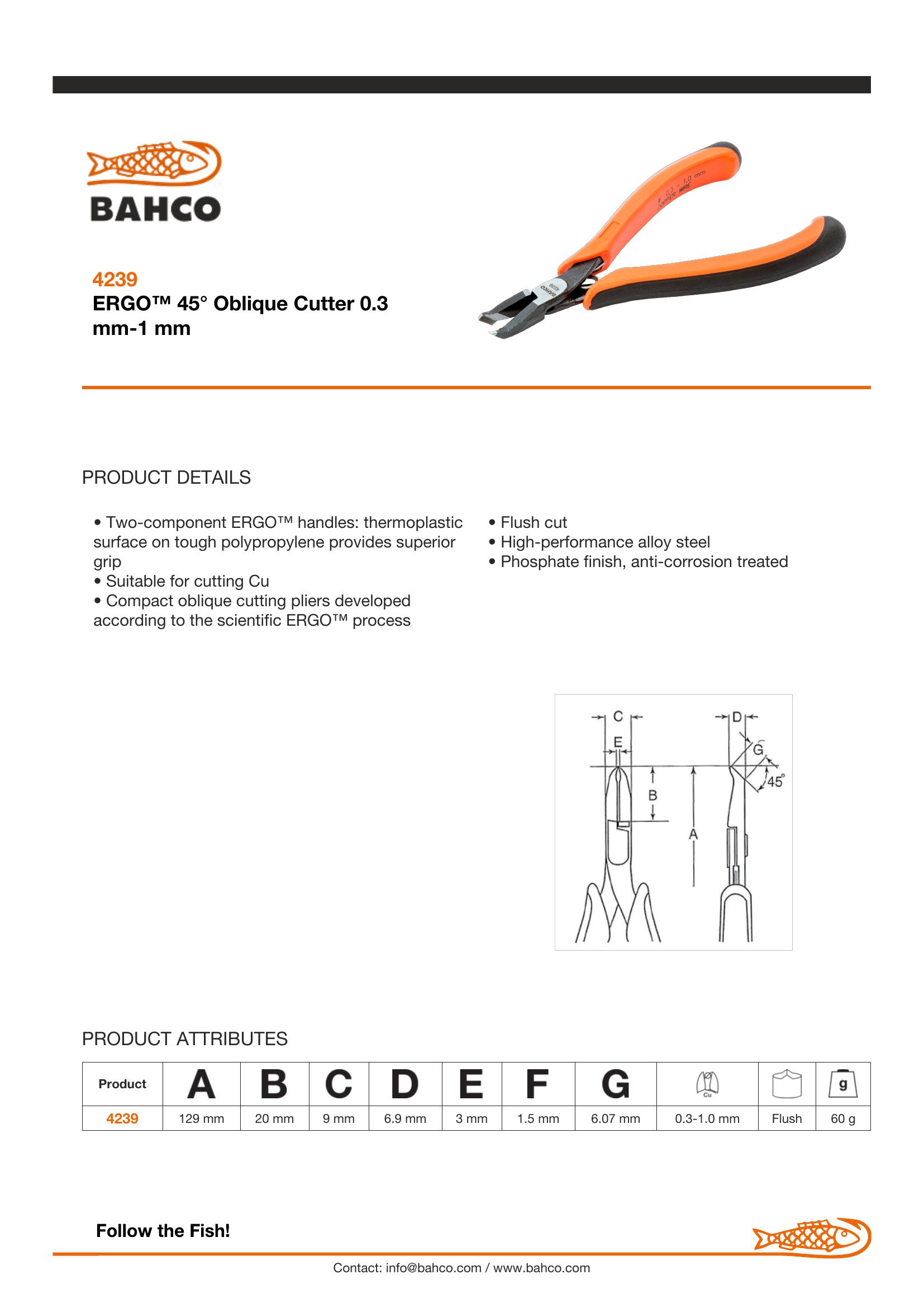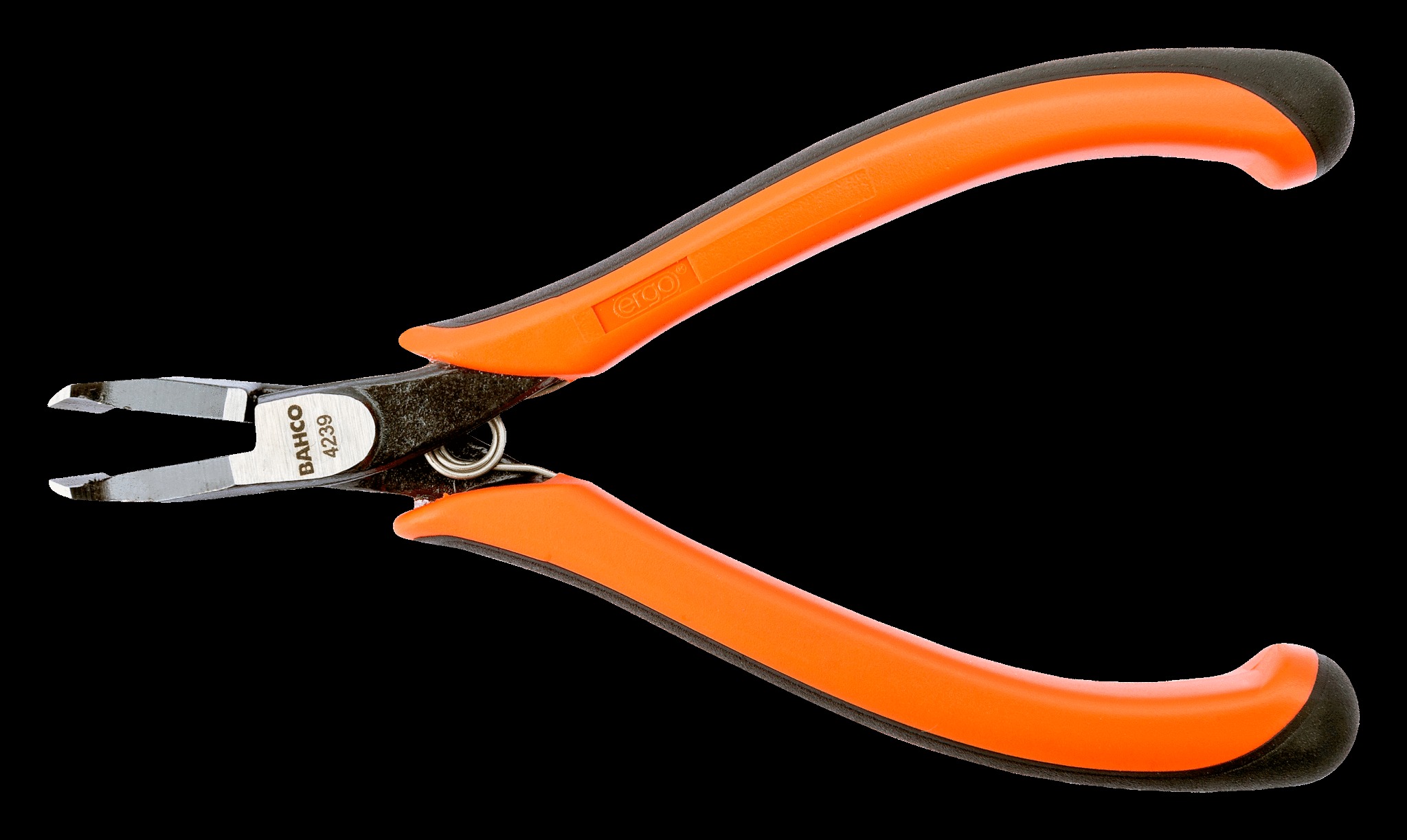 Bahco Ergo plier, oblique cutter, 45 deg angle head, 129mm, ergo sleeves with opening spring, flush cut