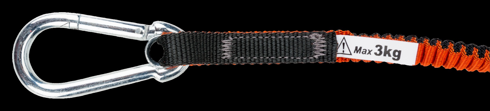 Fitted with a reinforced non-removable carabiner and fixed loop with barrel lock