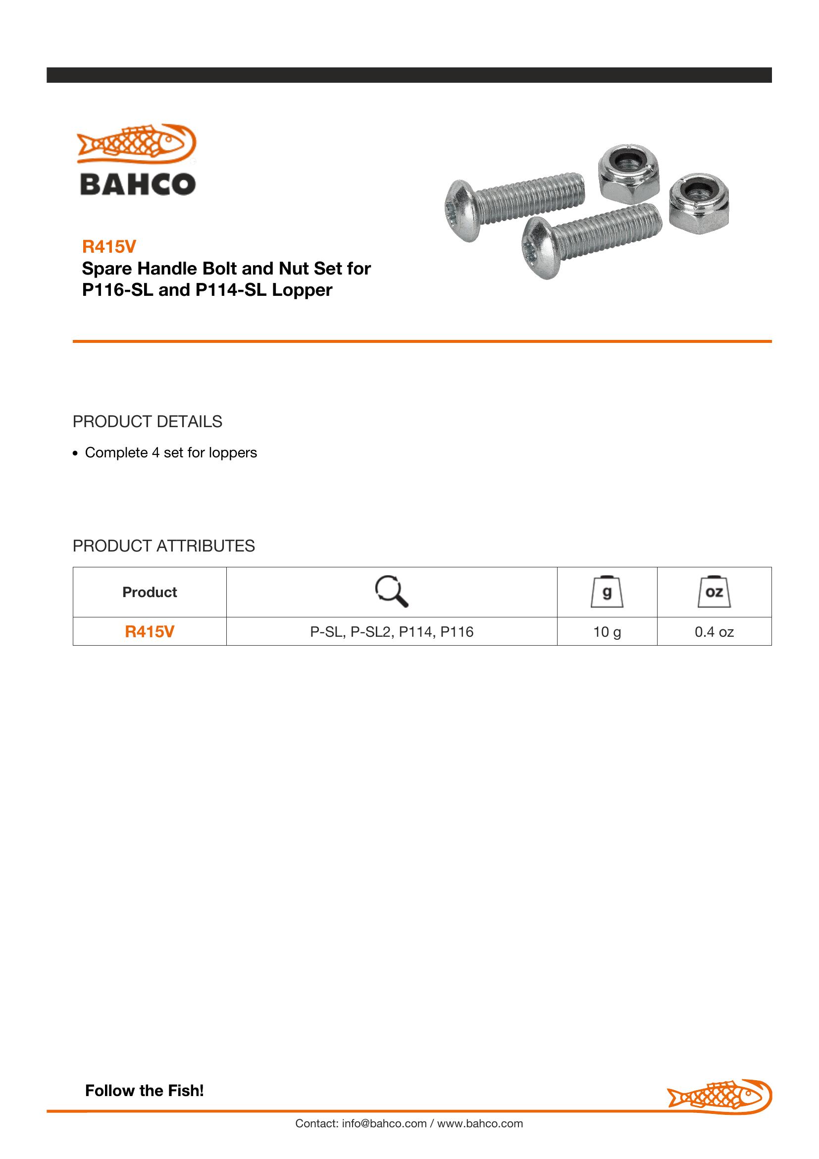 Home » Shop » HAND TOOLS » Bahco Handle bolt complete for P-SL-40, P-SL-45 & P-SL-60, P114-SL-50, P116-SL-40 & 60