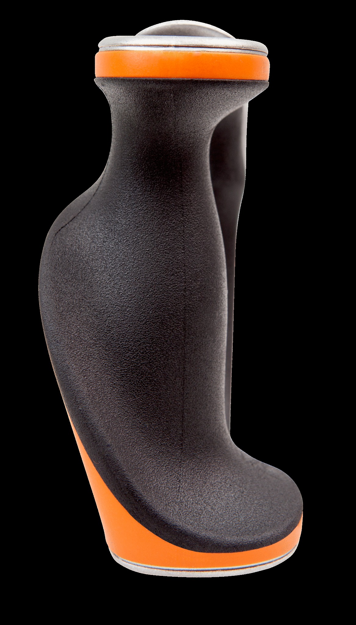 Asymmetrical shape and extended support wing spreads the pressure on the hand to the entire palm