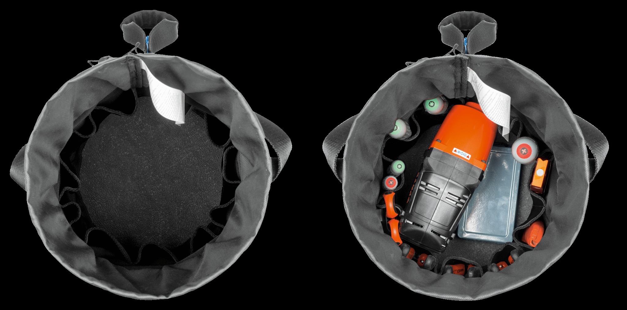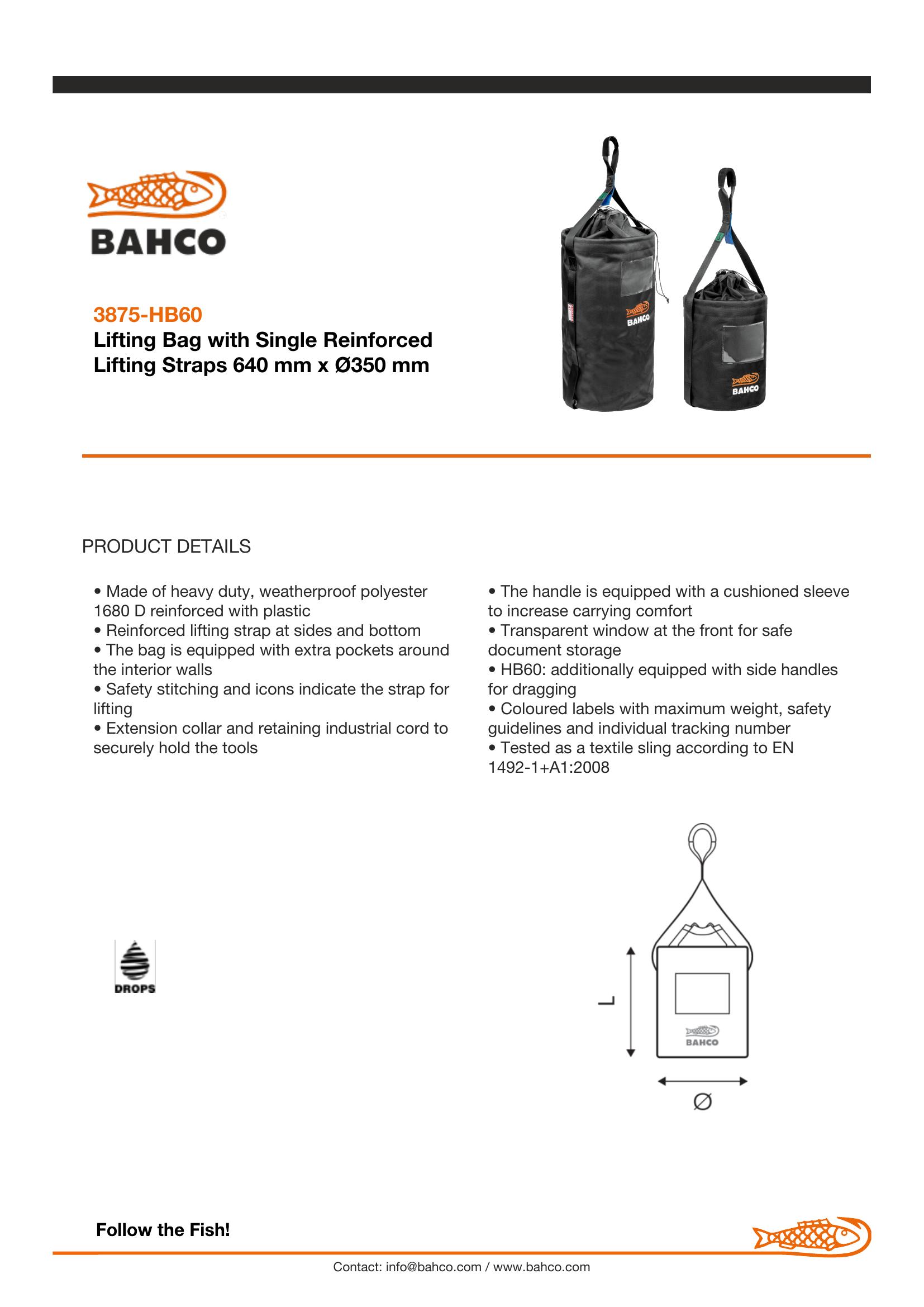 Coloured labels with maximum weight, safety guidelines and individual tracking number