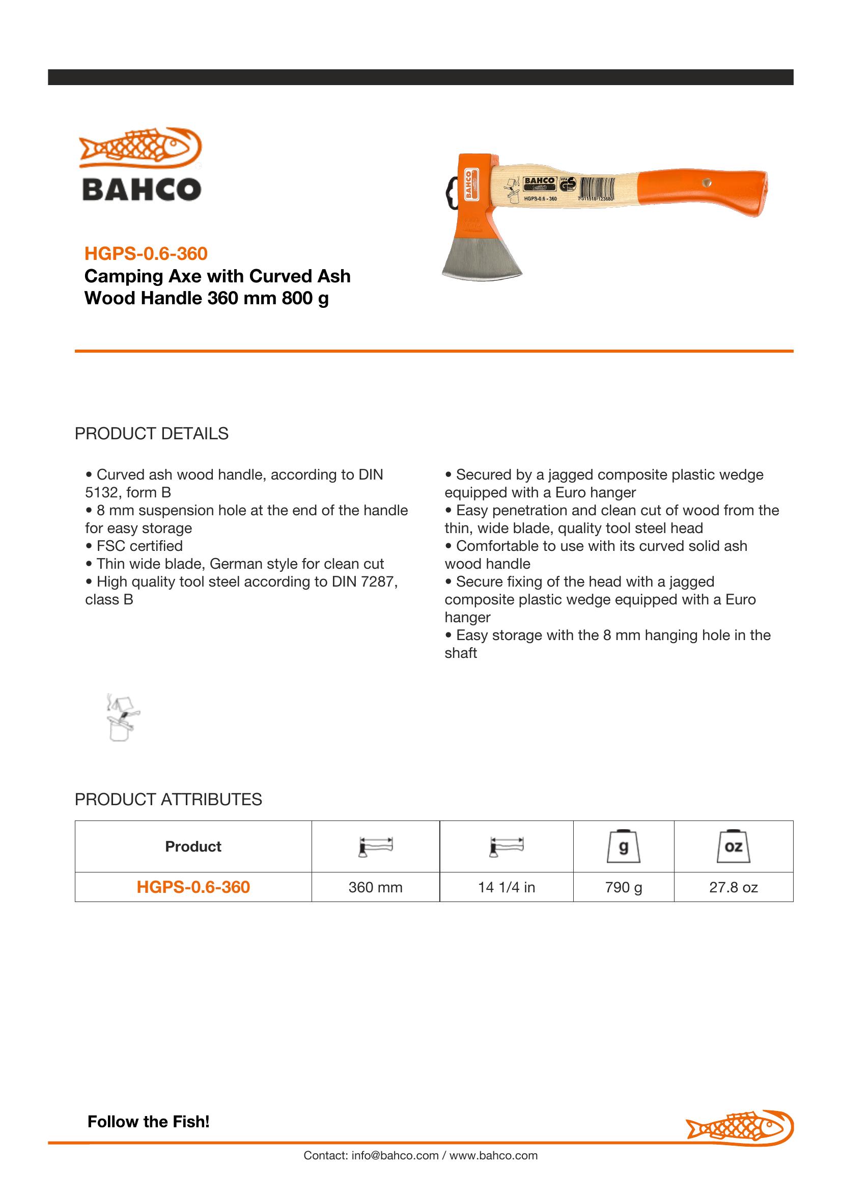 Easy penetration and clean cut of wood from the thin, wide blade, quality tool steel head