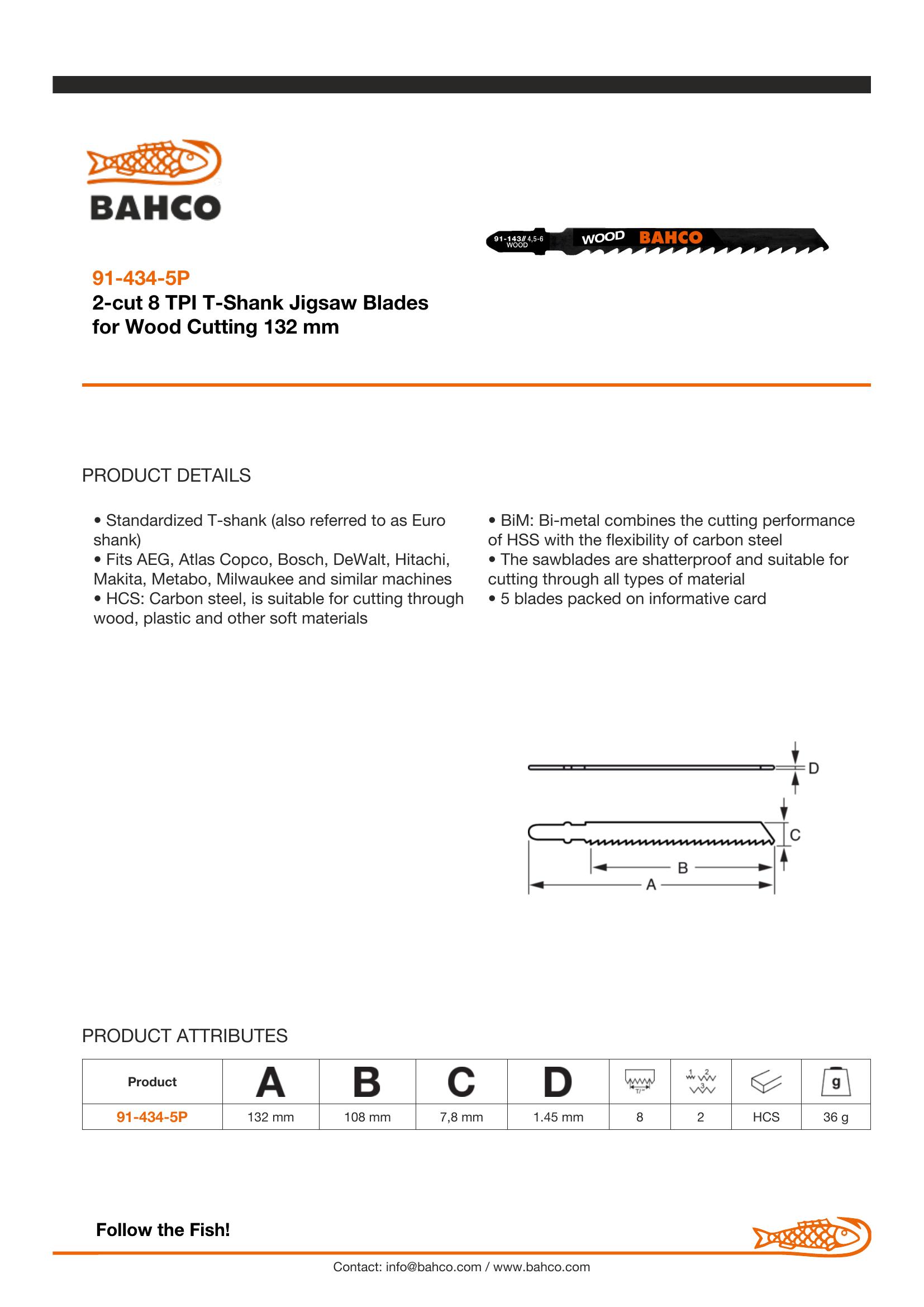 BiM: Bi-metal combines the cutting performance of HSS with the flexibility of carbon steel