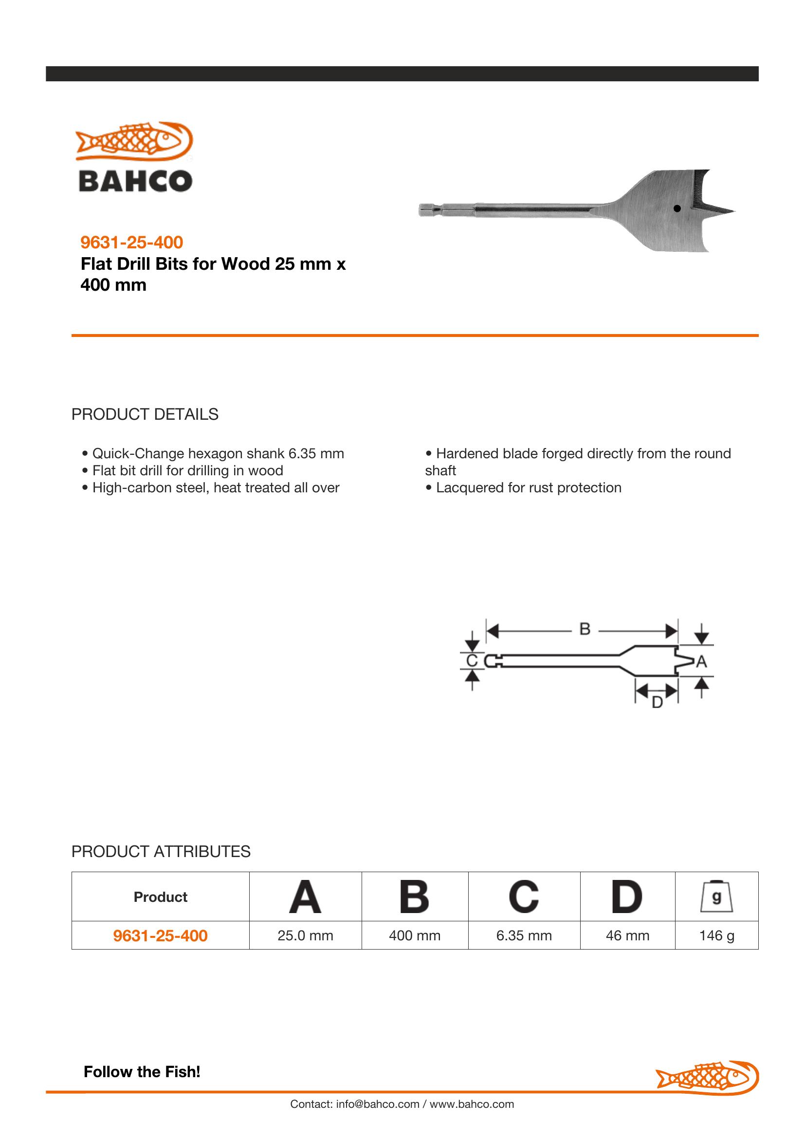Home » Shop » CUTTING TOOLS (HSS & Carbide) » SAW » Bahco Long Flat Bit Drill 25mm