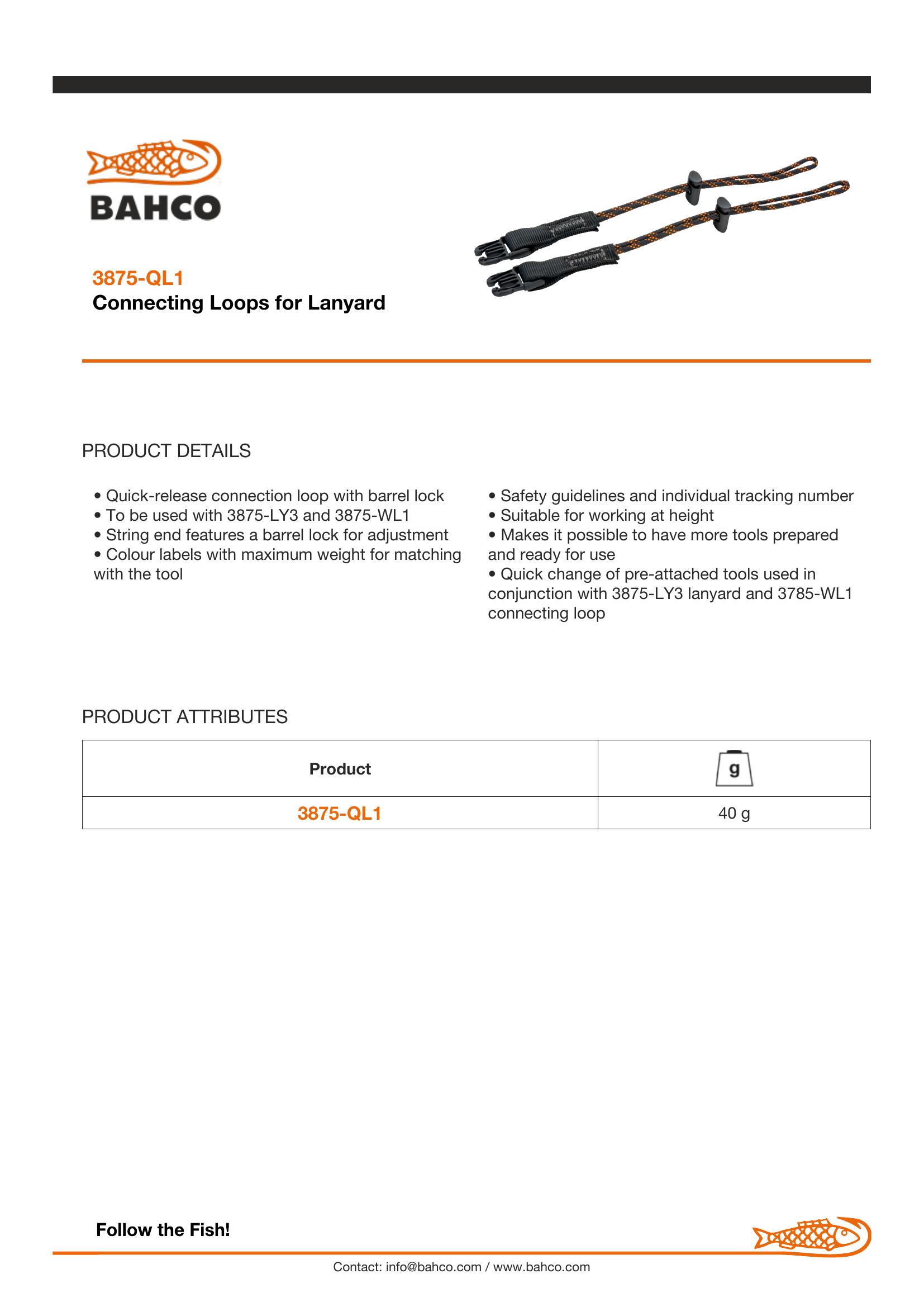 Quick change of pre-attached tools used in conjunction with 3875-LY3 lanyard and 3785-WL1 connecting loop