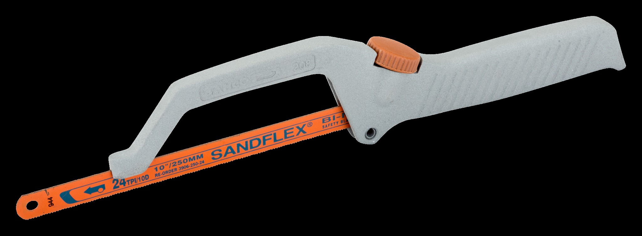 Supplied with a 250 mm (10″) Sandflex® 24 TPI bi-metal blade