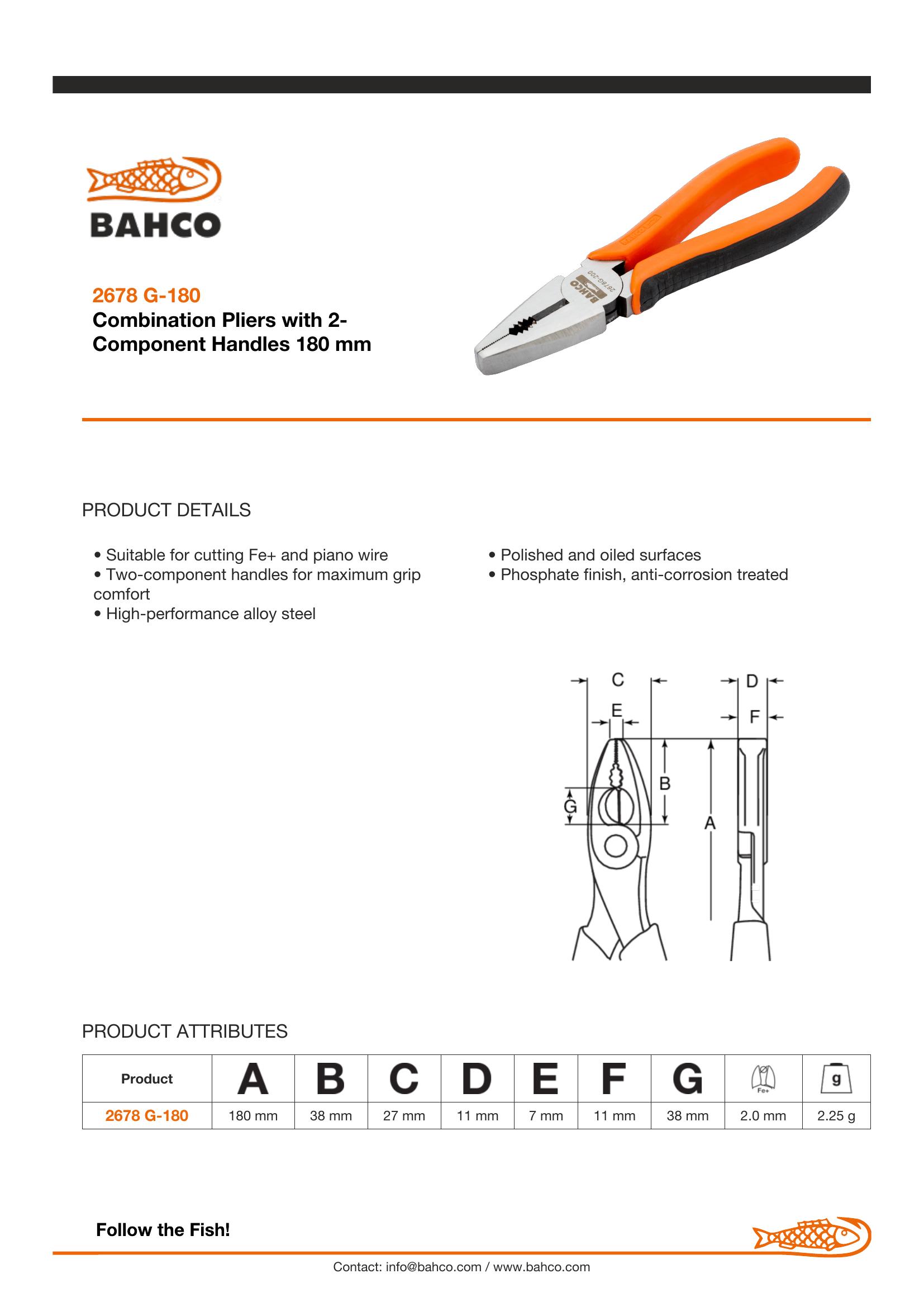 Home » Shop » HAND TOOLS » Pliers » Bahco Plier, combination, 180mm
