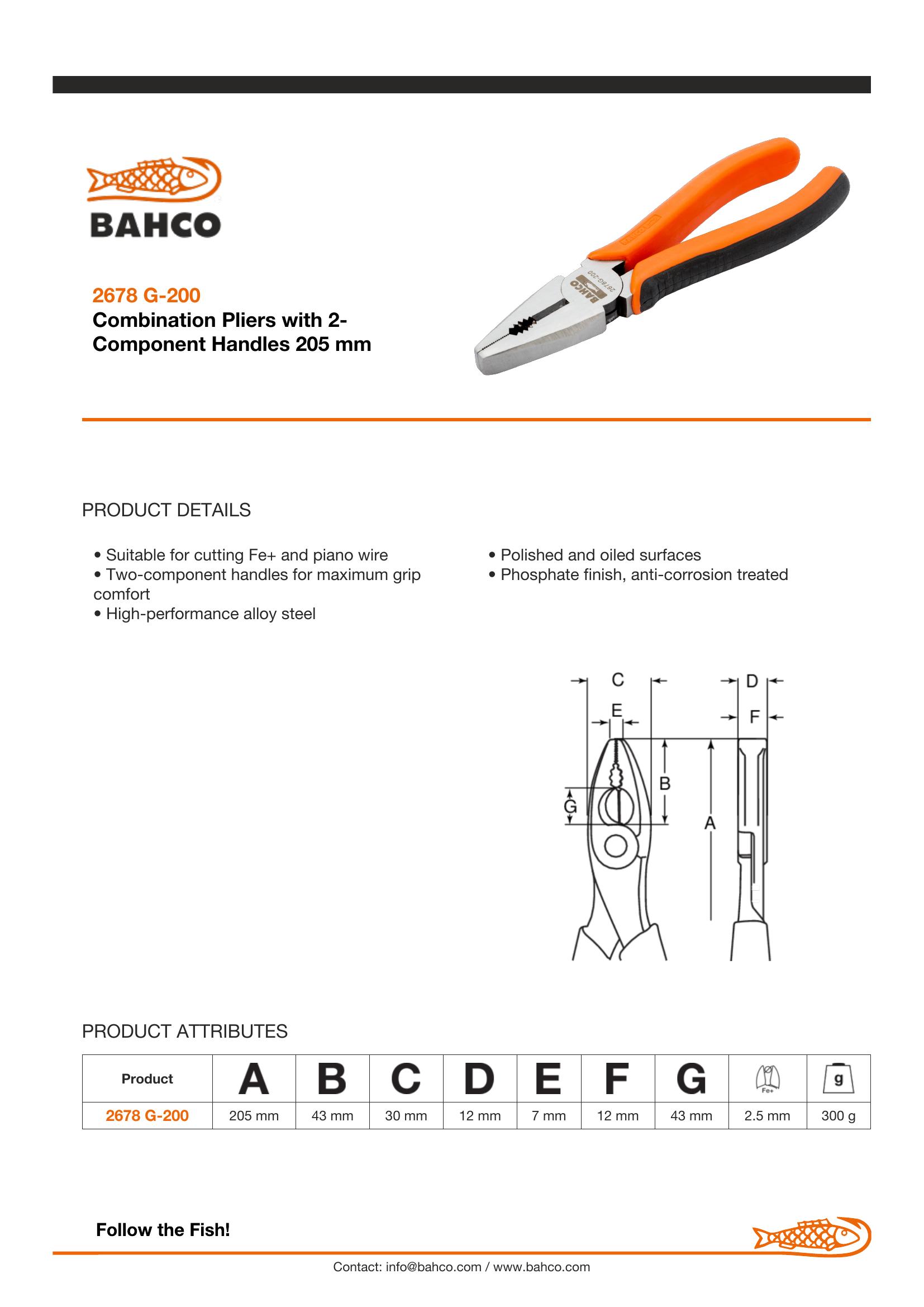Home » Shop » HAND TOOLS » Pliers » Bahco Plier, combination. 200mm