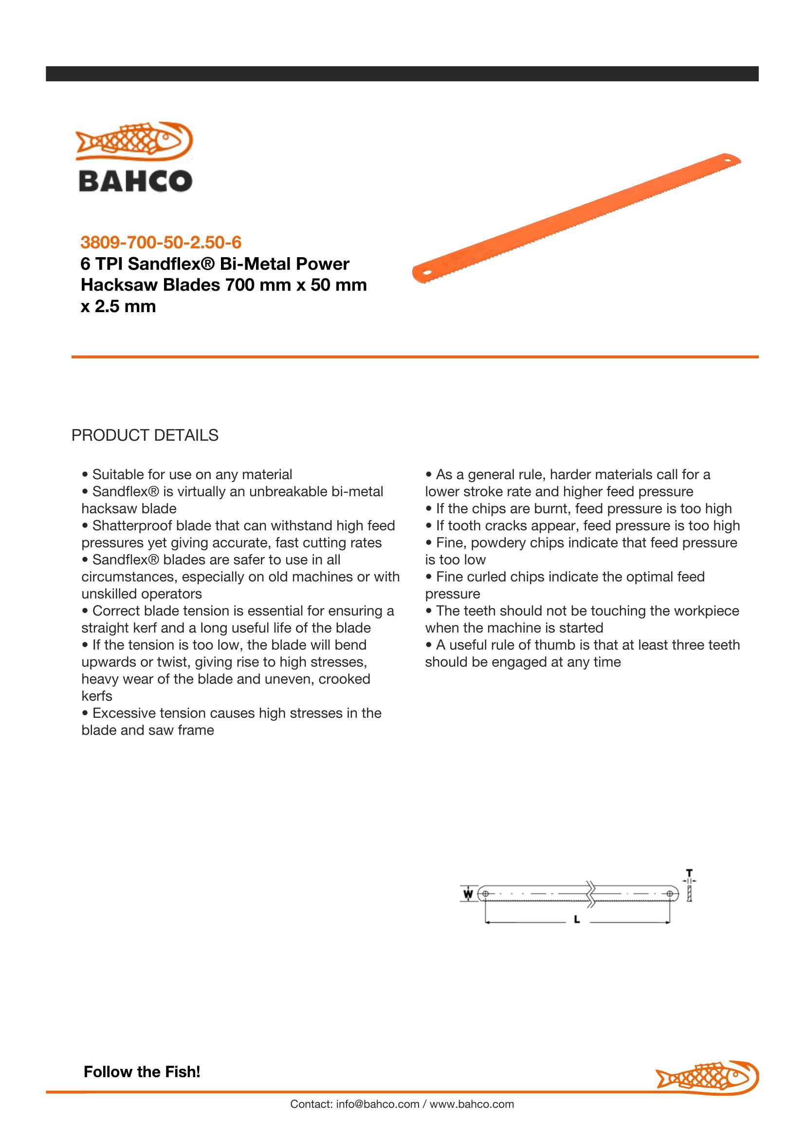Bahco Power hacksaw blade – Sandflex flexible bi-metal HSS