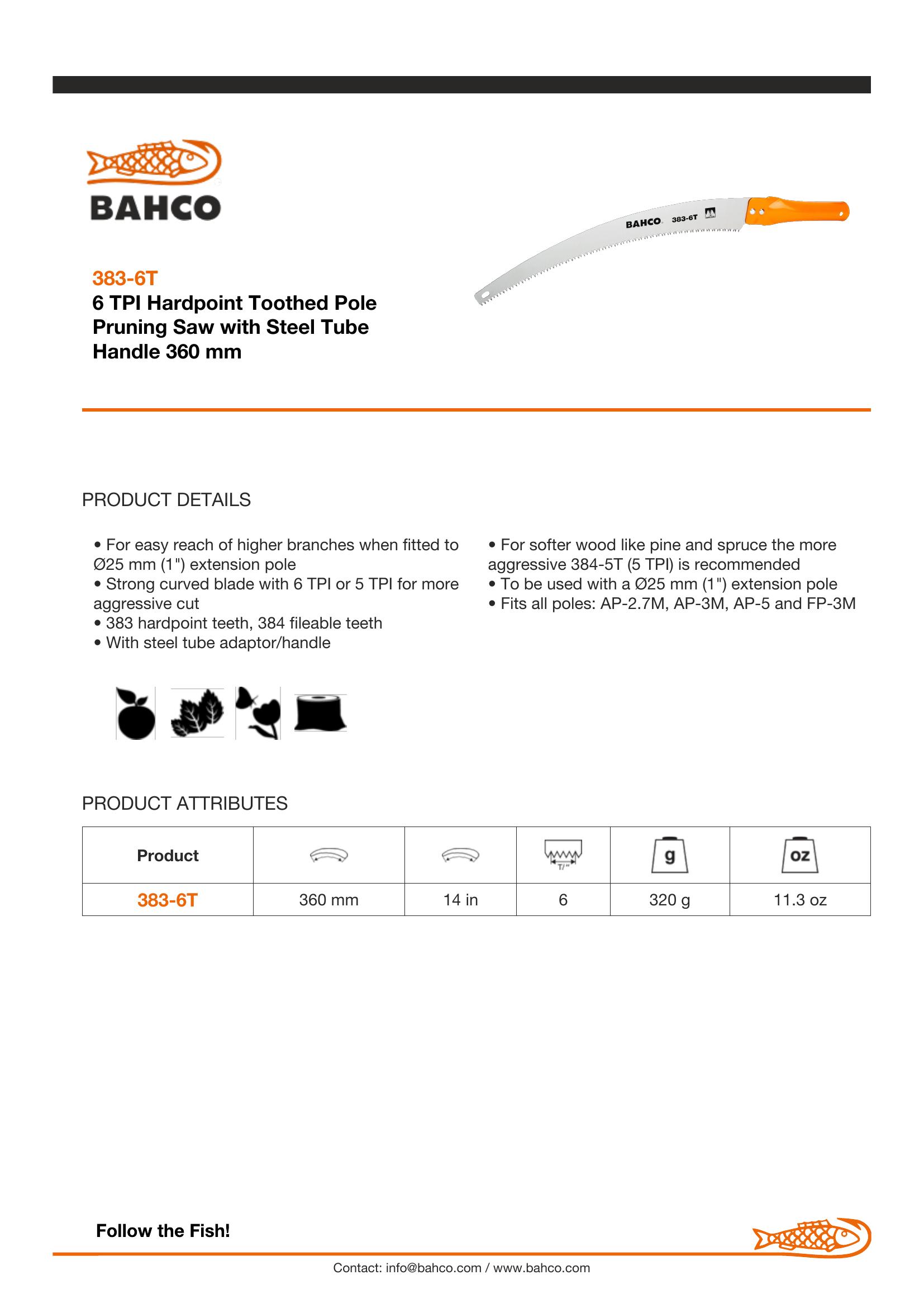 For easy reach of higher branches when fitted to Ø25 mm (1″) extension pole
