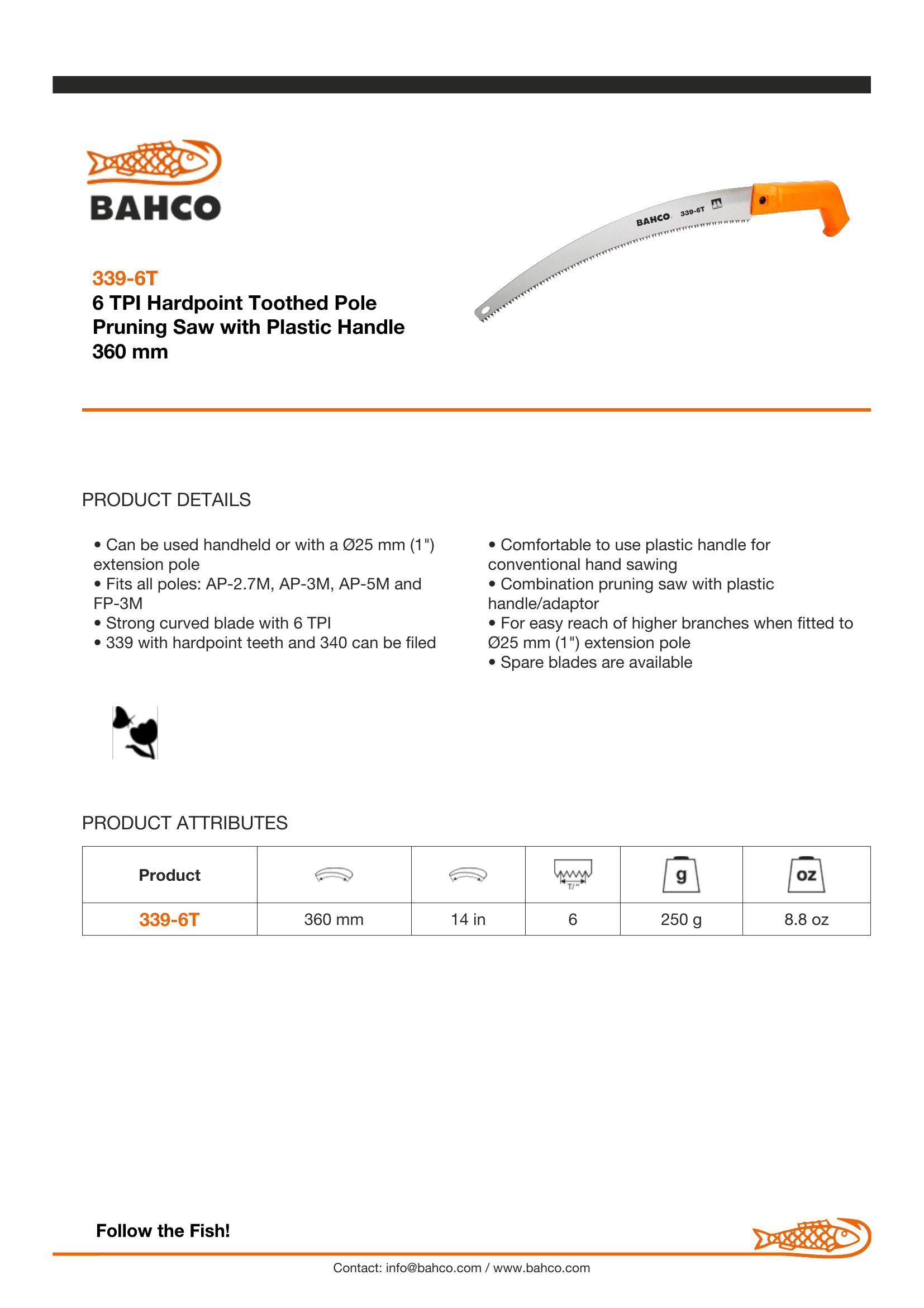 For easy reach of higher branches when fitted to Ø25 mm (1″) extension pole