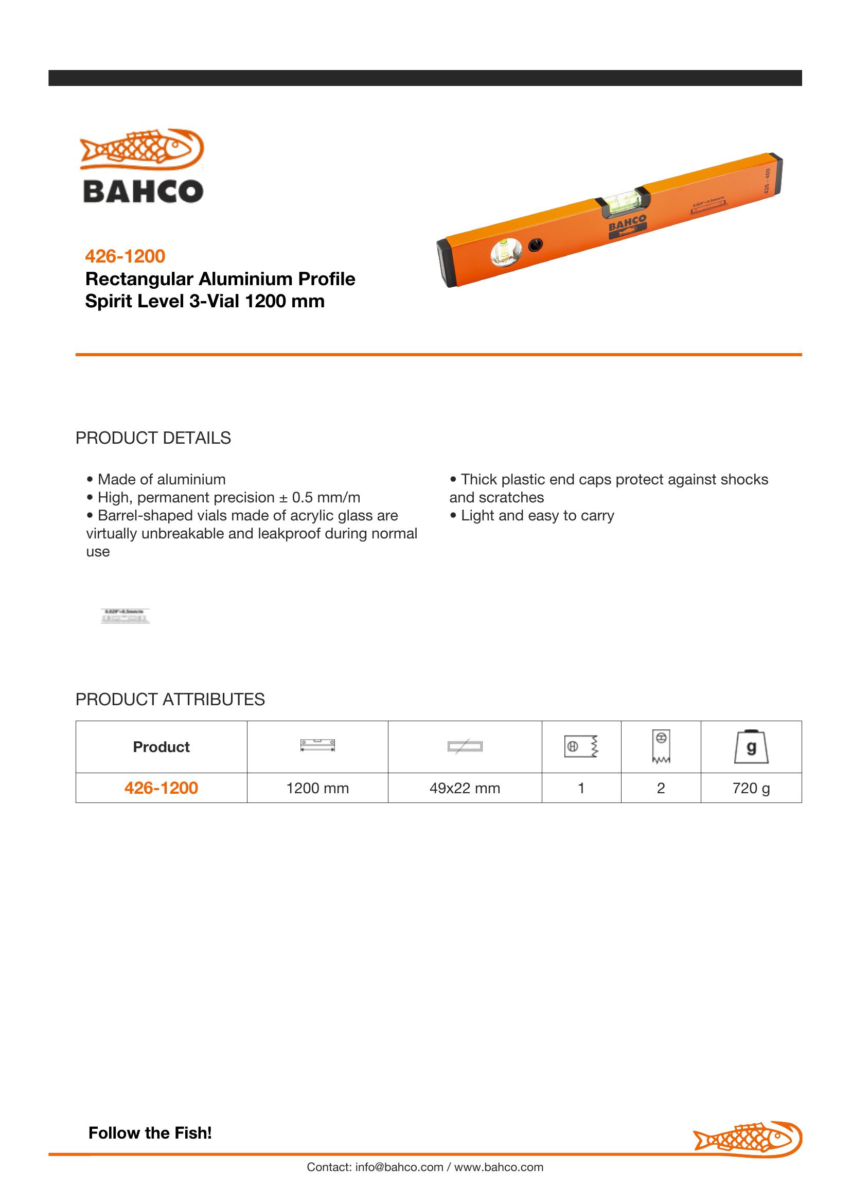 Bahco Rectangular Aluminium Profile Spirit Level 3-Vial 1200 mm
