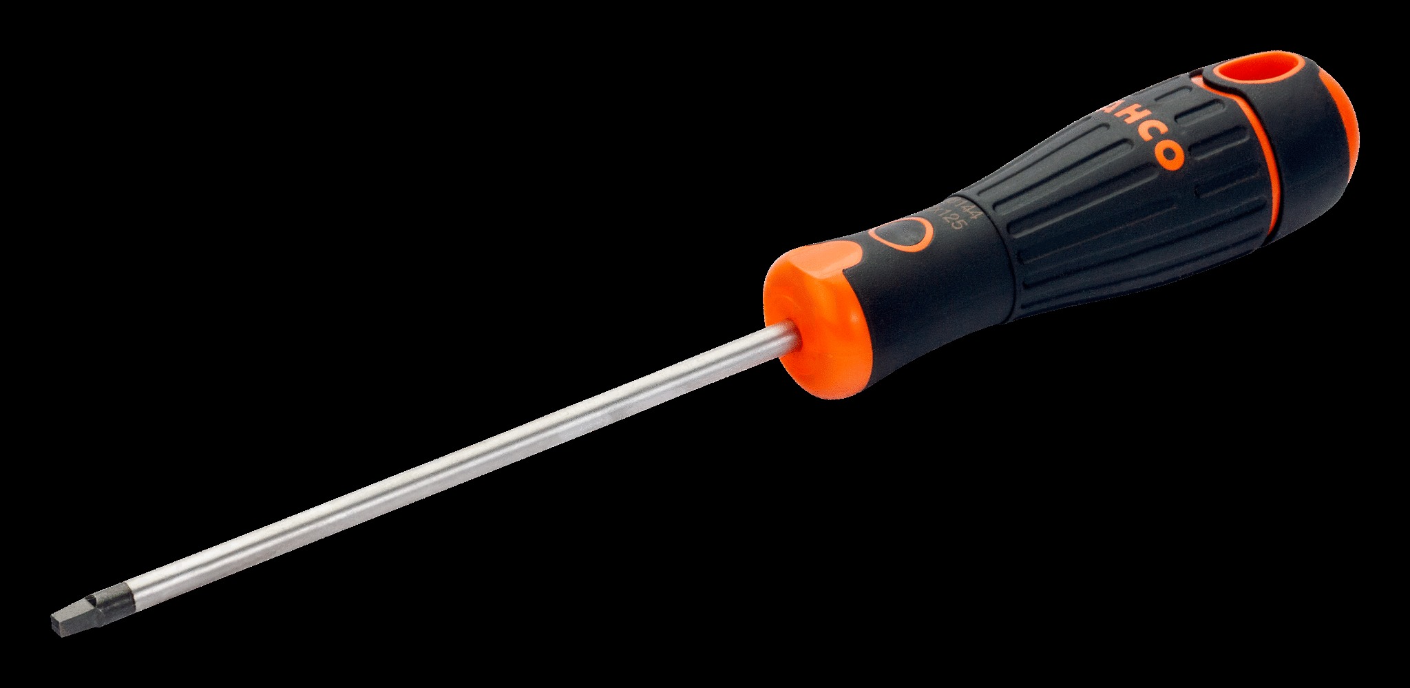 Two-component handle with vertical grooves and large soft-grip area for comfortable grip and high torque transfer