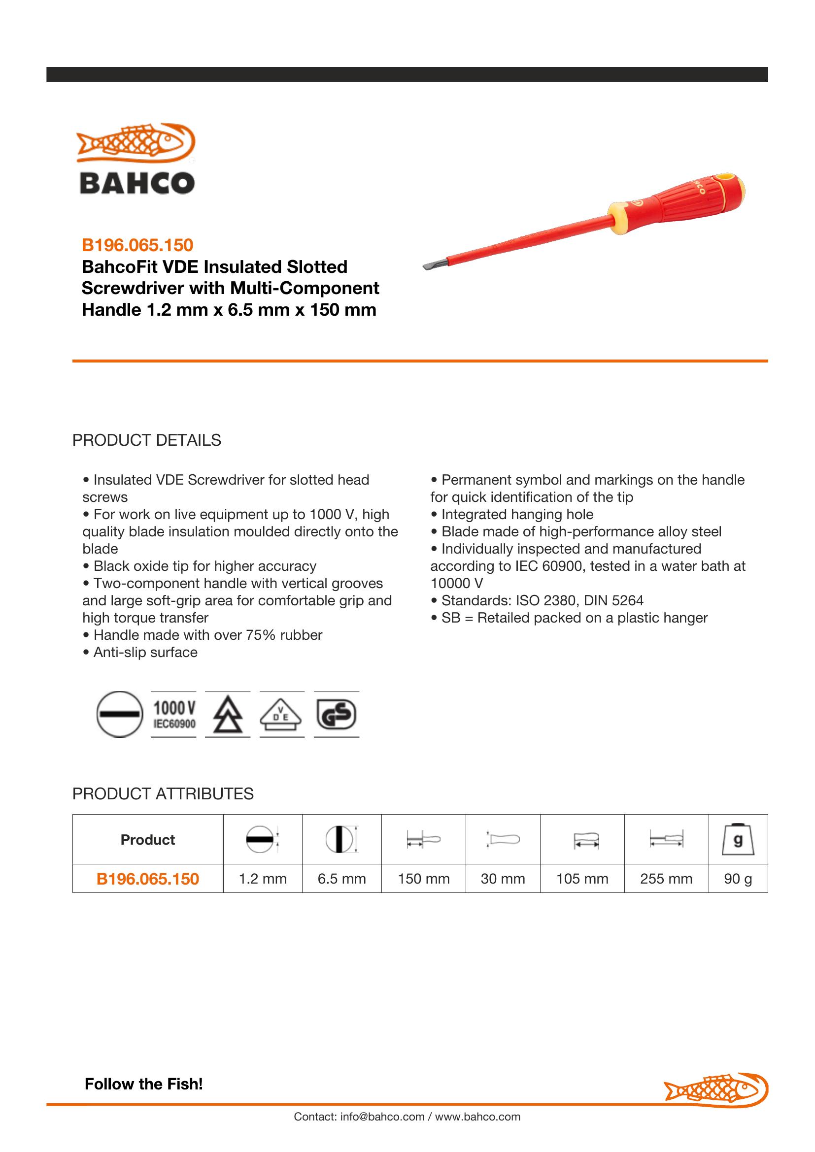 Bahco Slotted 1000v 6.5mm tip – blade length 150mm – BahcoFit