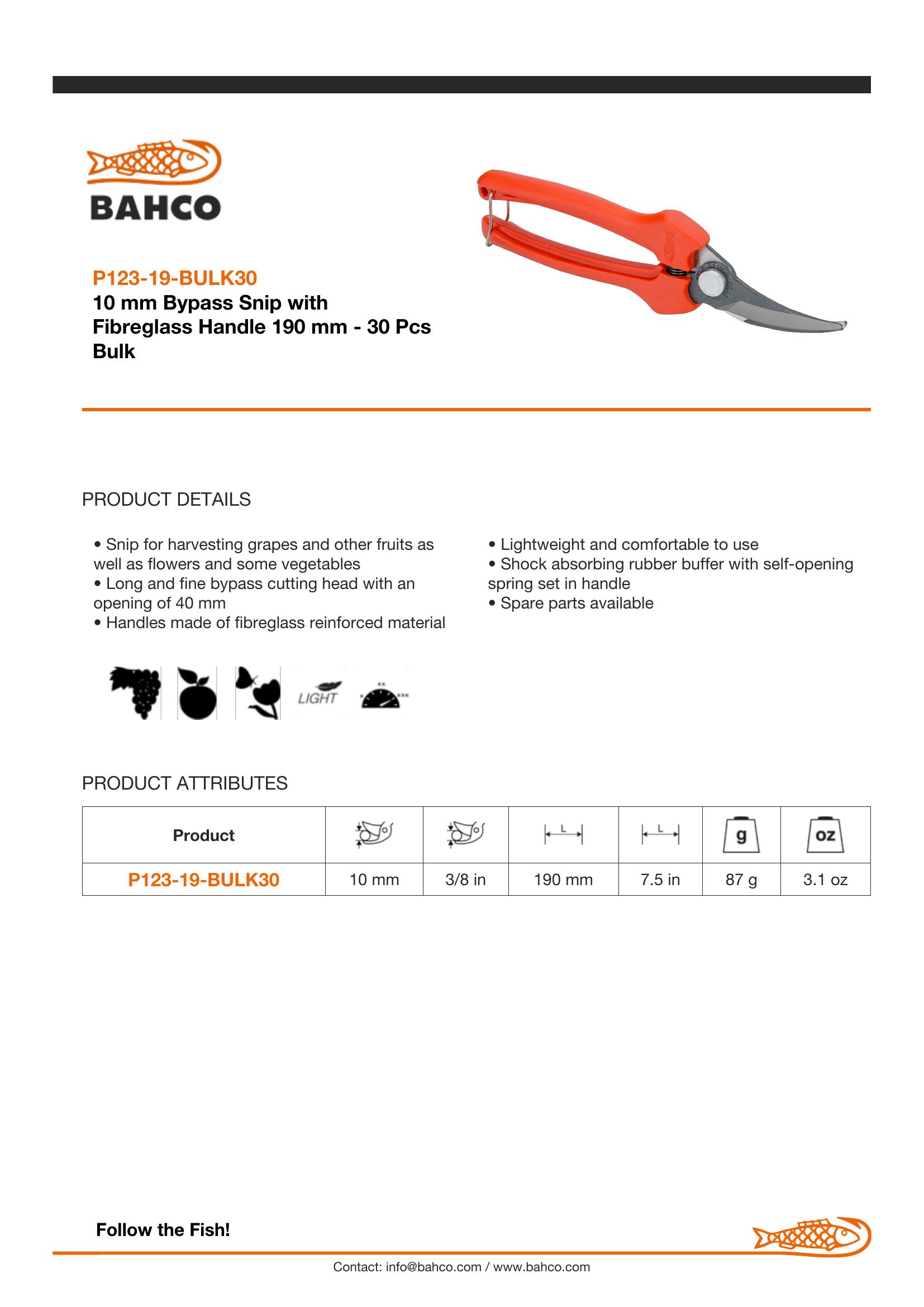 Snip for harvesting grapes and other fruits as well as flowers and some vegetables