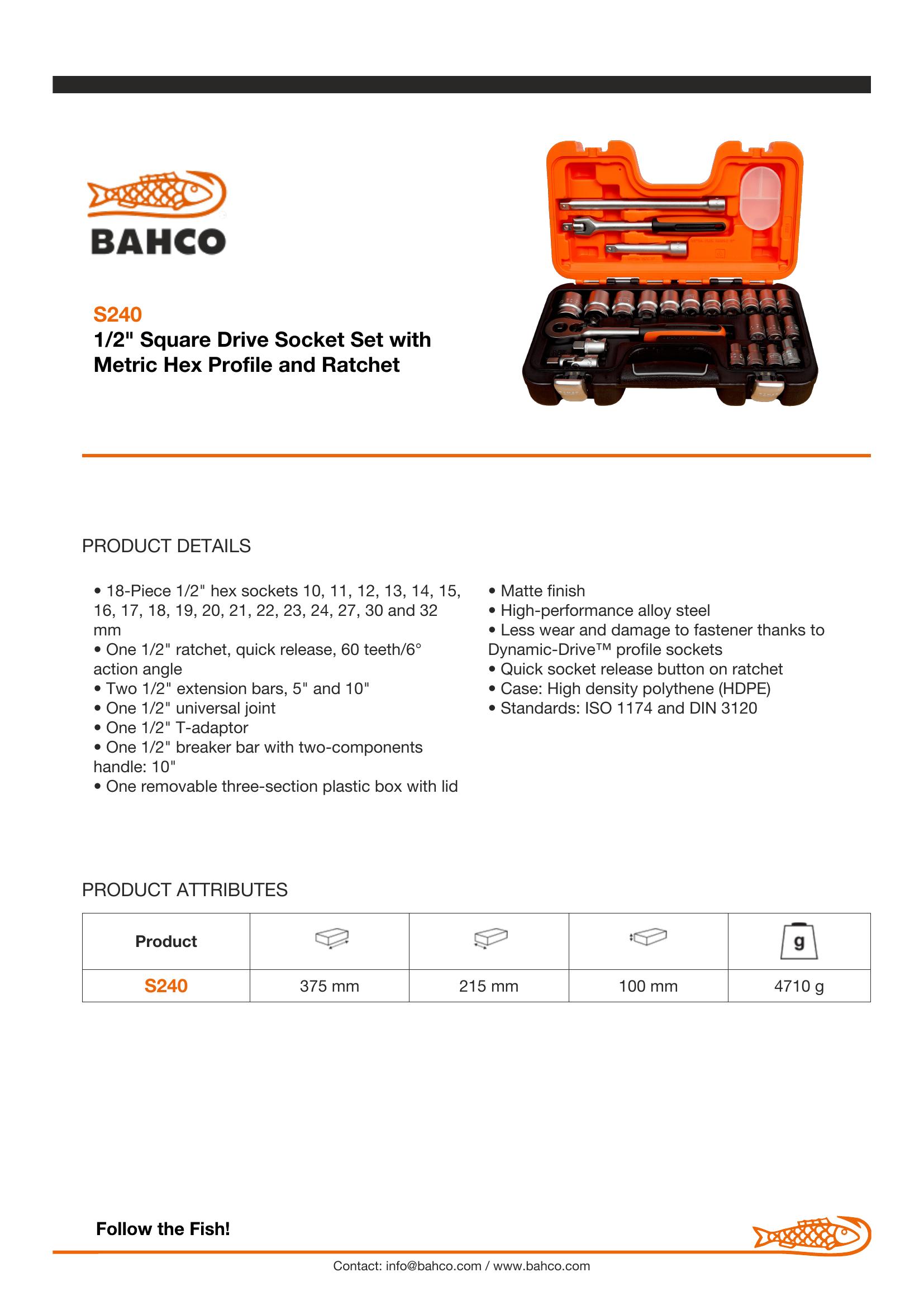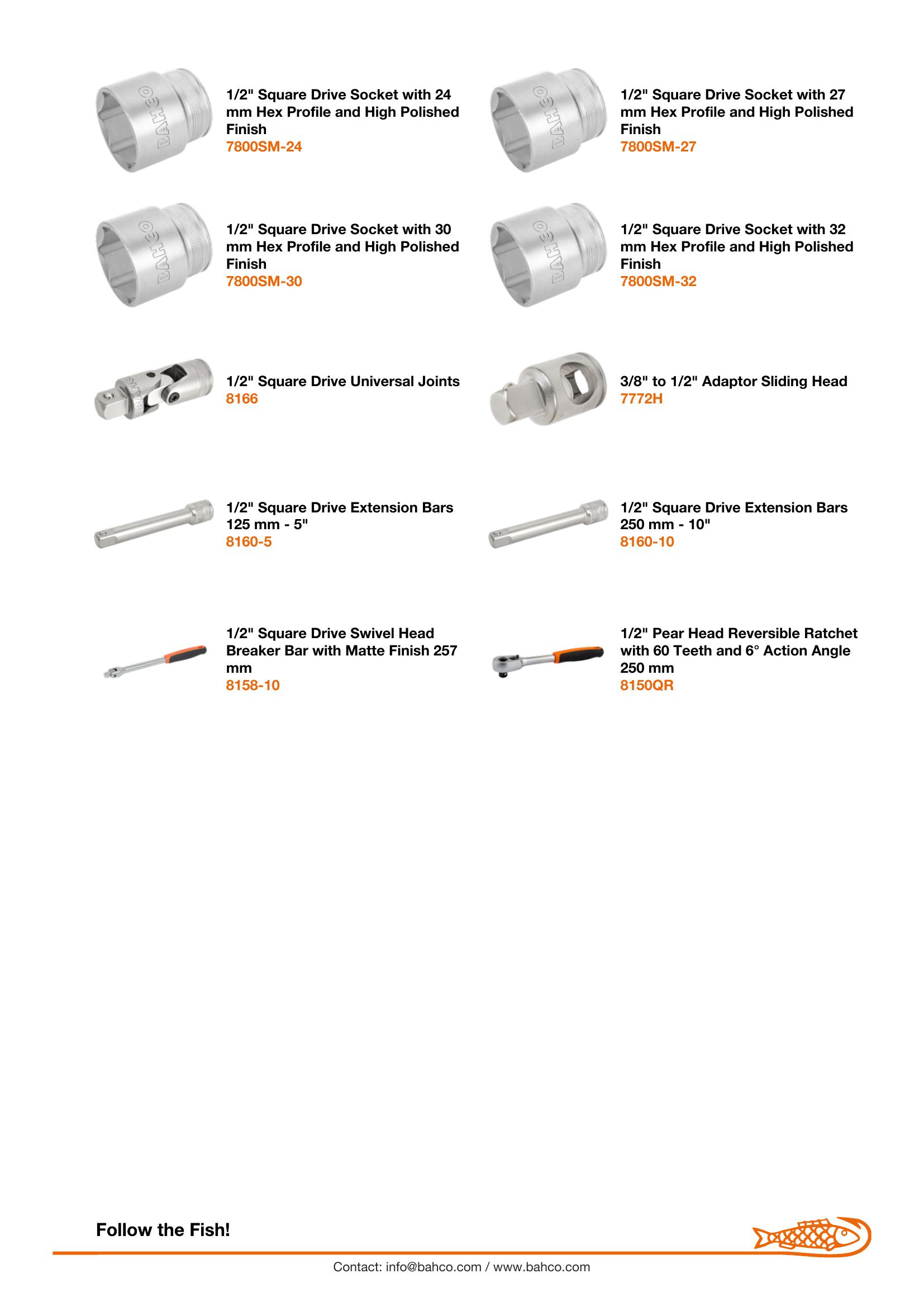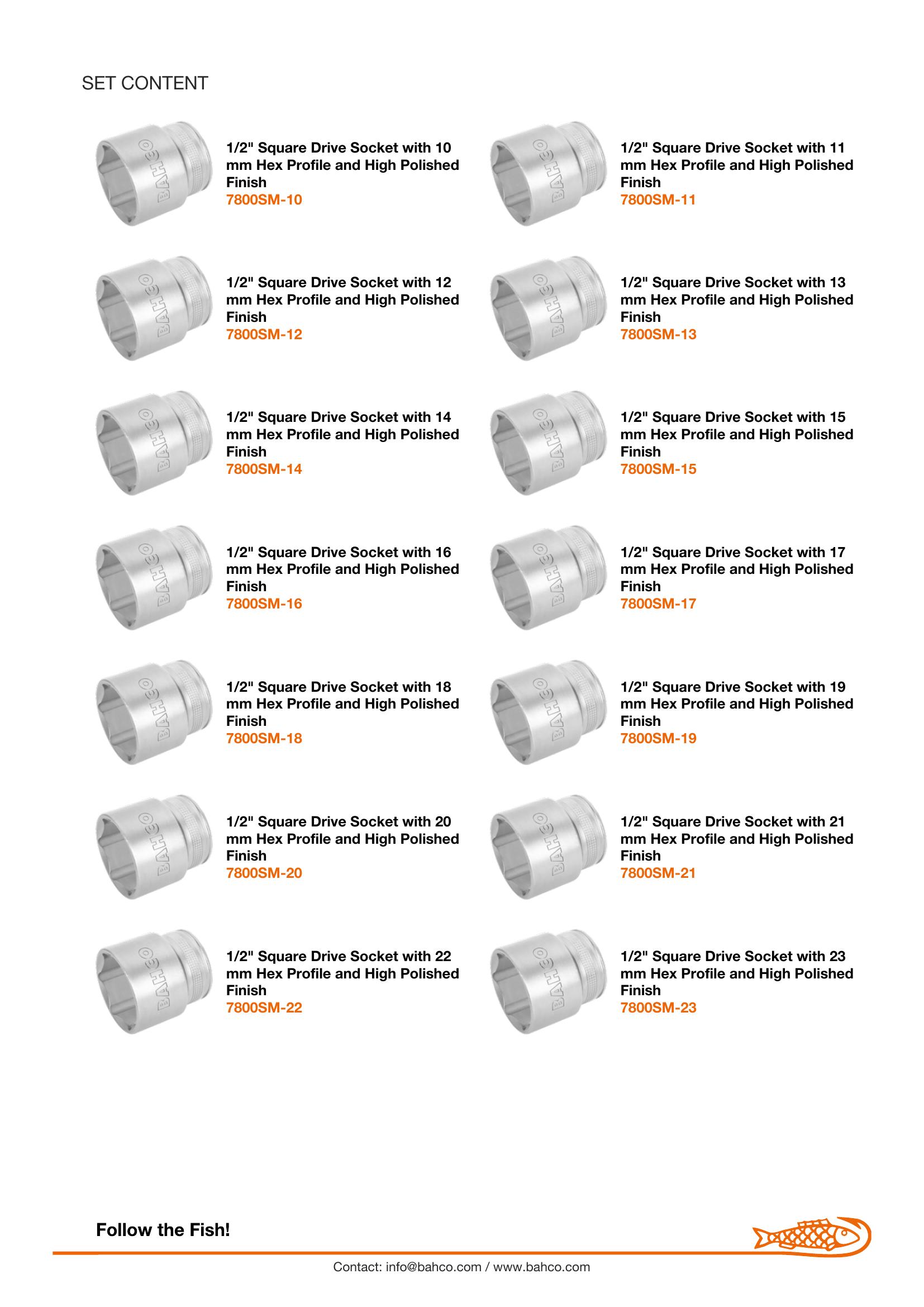 18-Piece 1/2″ hex sockets 10, 11, 12, 13, 14, 15, 16, 17, 18, 19, 20, 21, 22, 23, 24, 27, 30 and 32 mm