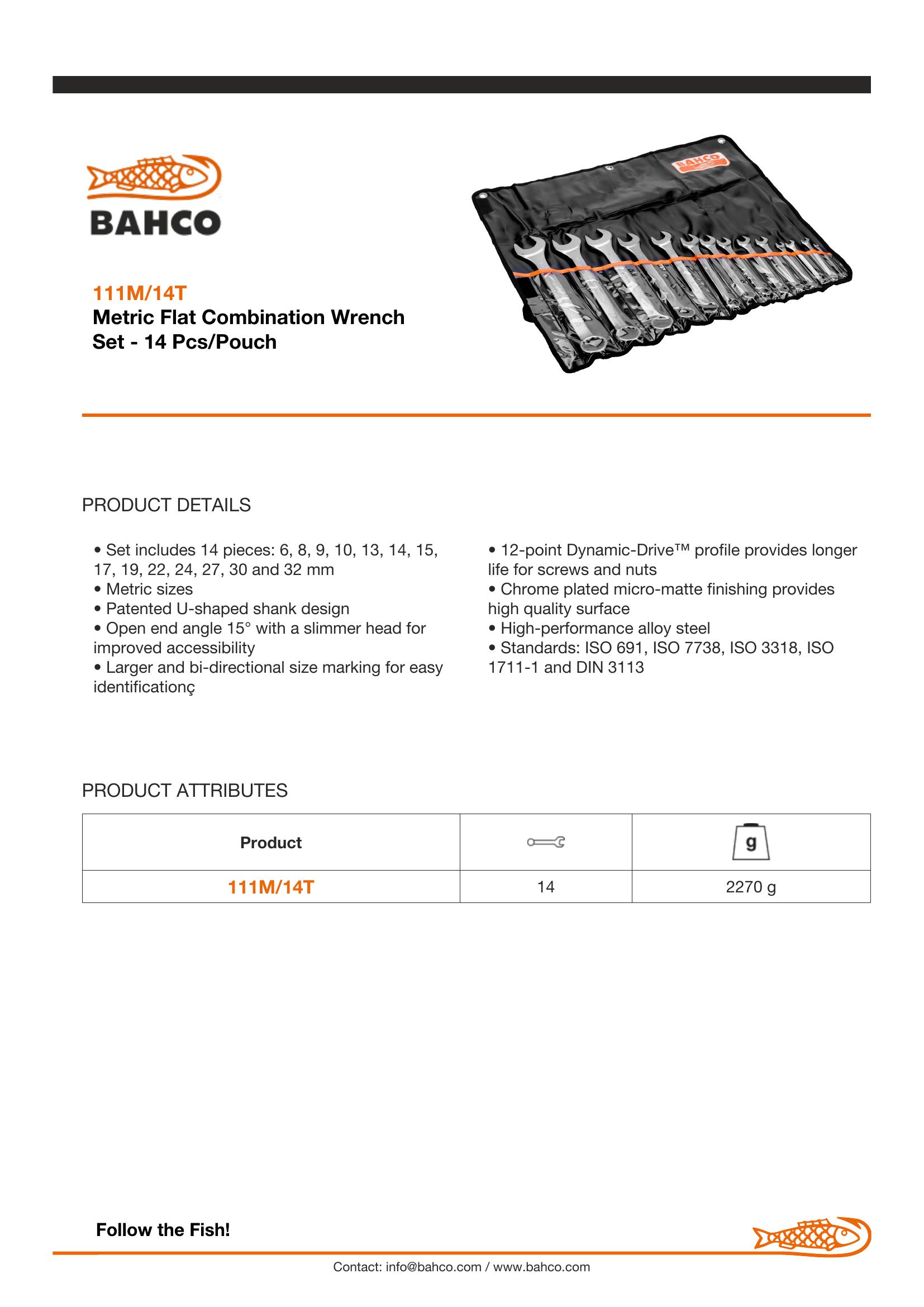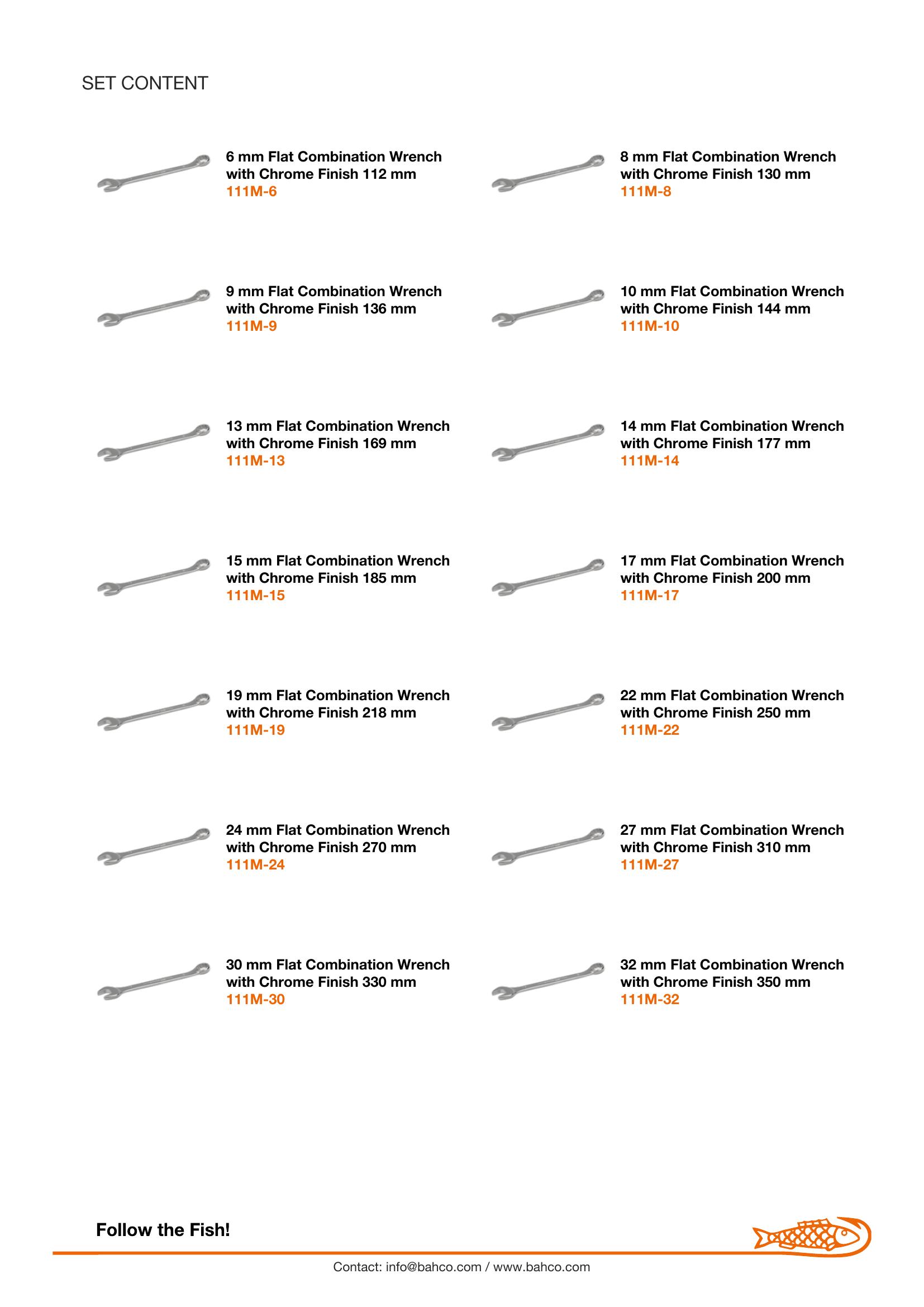 Set includes 14 pieces: 6, 8, 9, 10, 13, 14, 15, 17, 19, 22, 24, 27, 30 and 32 mm