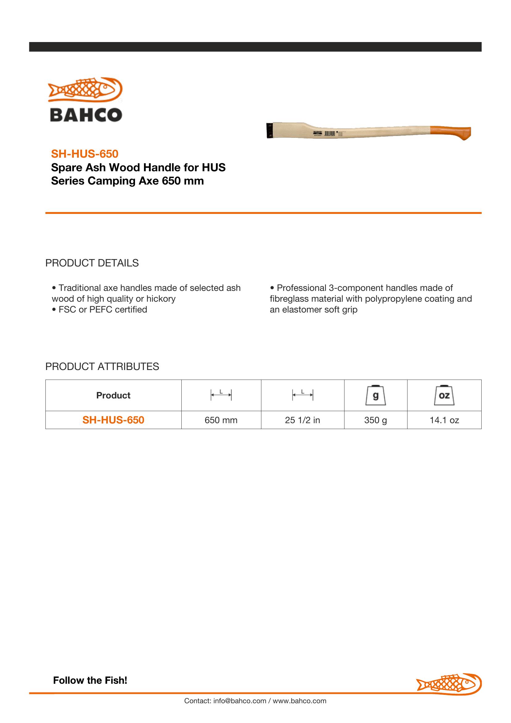 Home » Shop » HAND TOOLS » GARDEN » Bahco Spare Ashwood handle for HUS-1.0-650 – 3/4 axe