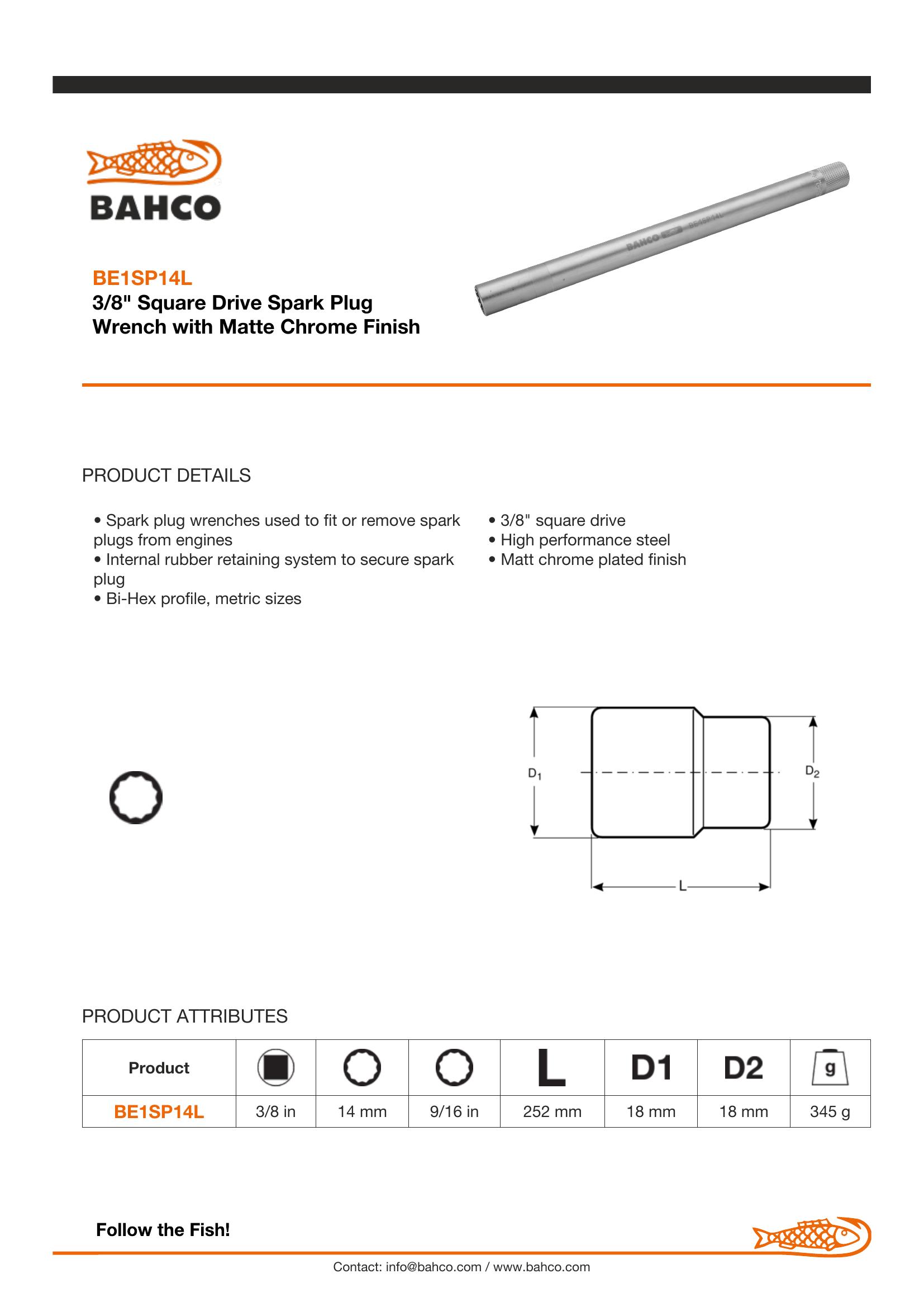 Home » Shop » HAND TOOLS » Bahco Spark Plug WR 14mm ex 3/8 L: 140