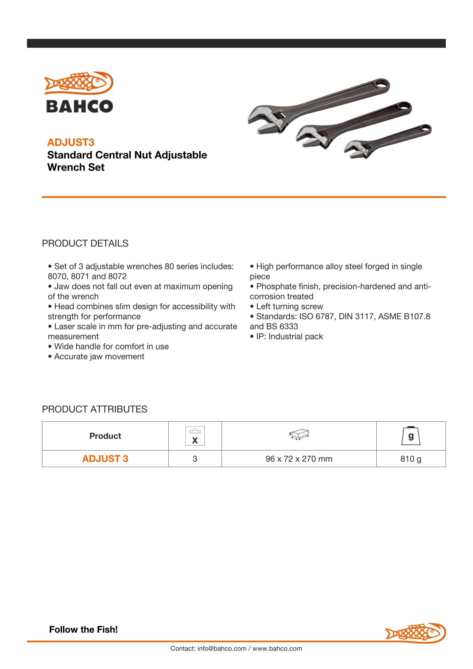 Set of 3 adjustable wrenches 80 series includes: 8070, 8071 and 8072