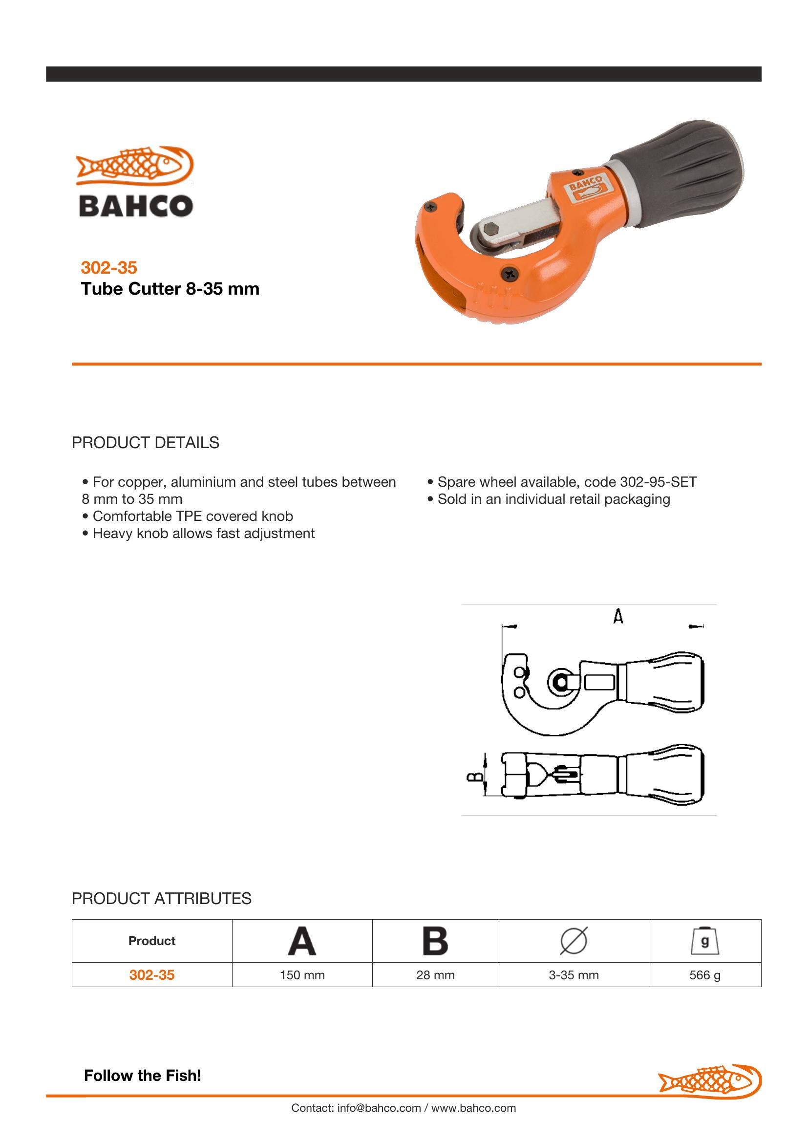 For copper, aluminium and steel tubes between 8 mm to 35 mm