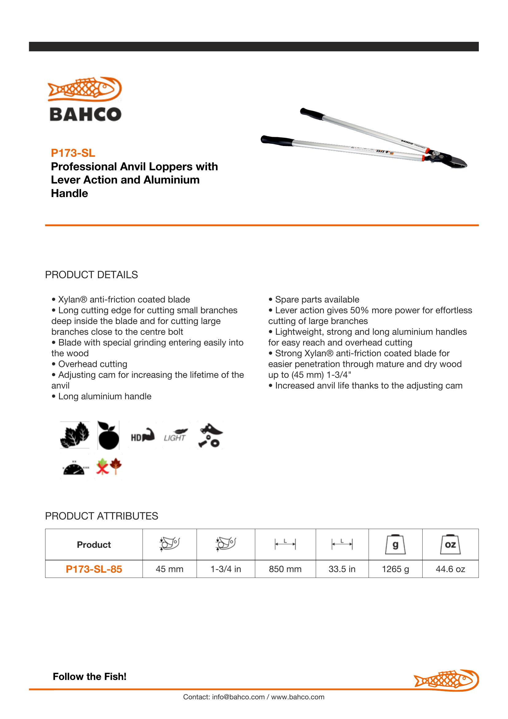 Lightweight, strong and long aluminium handles for easy reach and overhead cutting