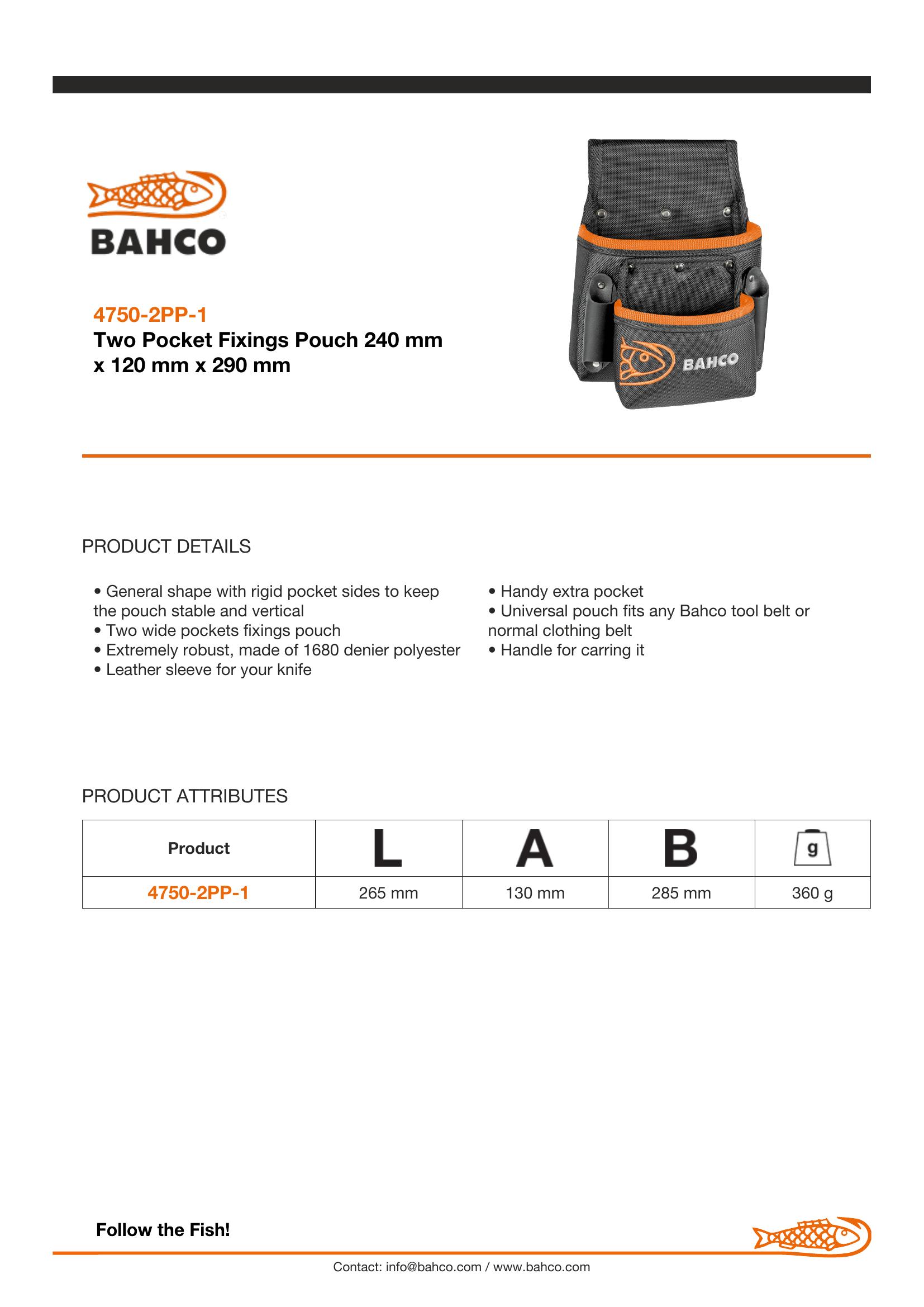 Universal pouch fits any Bahco tool belt or normal clothing belt