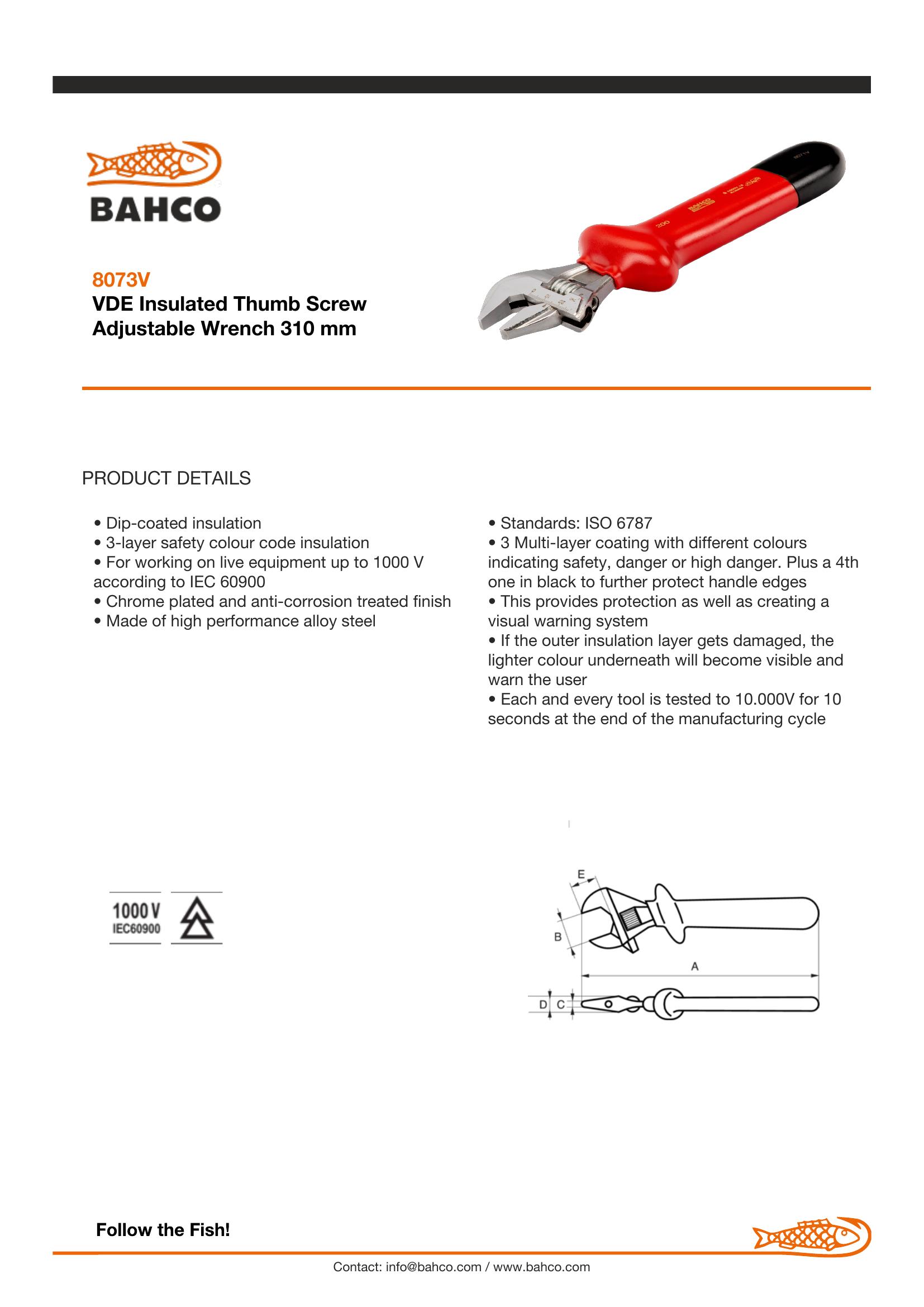Bahco VDE Insulated Thumb Screw Adjustable Wrench 310 mm