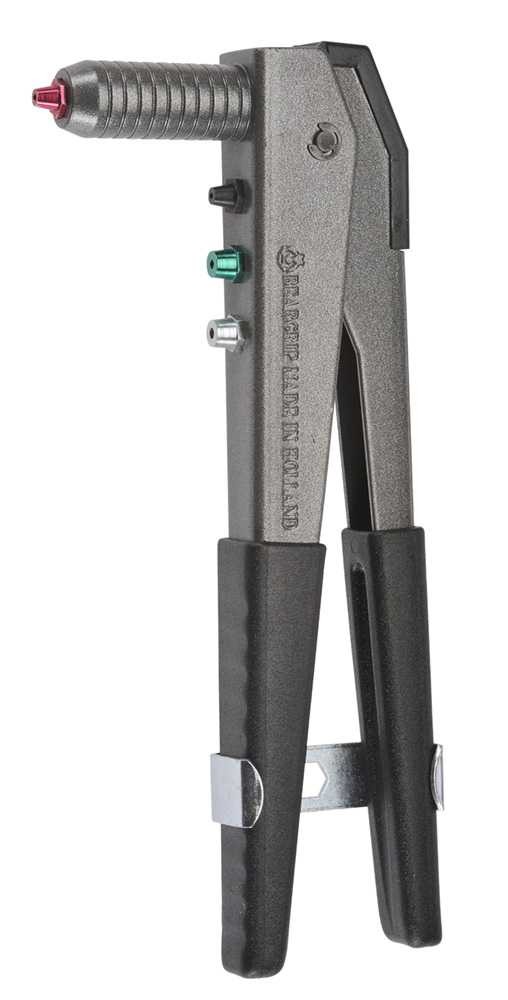 Complete with 4 interchangeable nozzles for setting Aluminium Rivets 2, 4-3-4 & 5mm and Steel Rivets 2, 4-3 & 4mm.