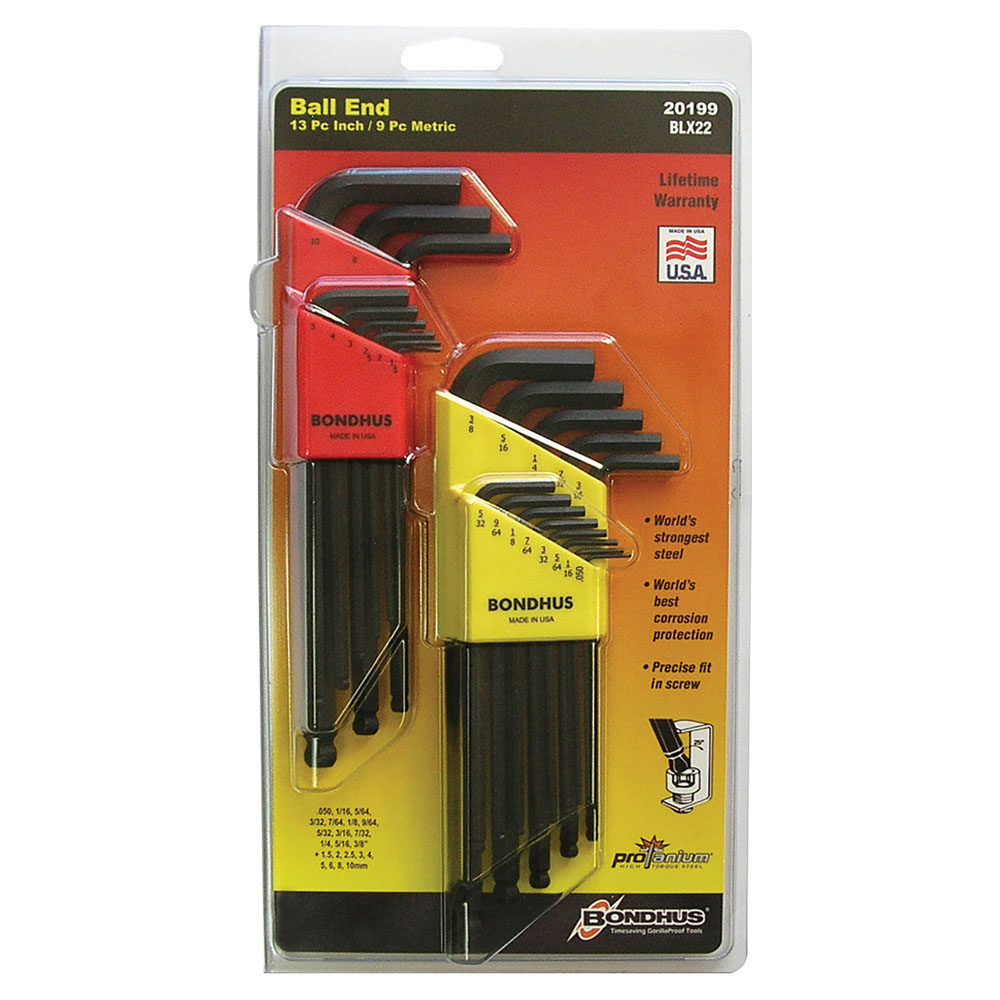 Home » Shop » HAND TOOLS » Bondhus Hex Keys » BONDHUS – BONDHUS SET 22 BALL END L-WR IN/MM