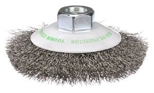 316 Stainless Steel Wire – Multi-bore crimp wire bevel brushes have a M14 X 2.00 thread and are supplied with a M10 X 1.50 adaptor.
