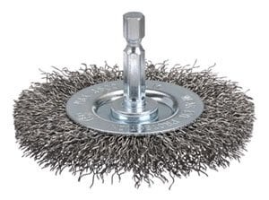 Bordo hex shank crimp wire wheel brushes are designed for use with low speed electric drills for removing scale, rust, and paint and other surface preparation including deburring and polishing.